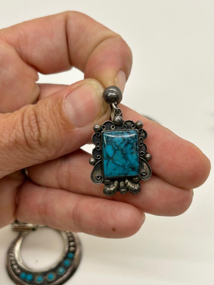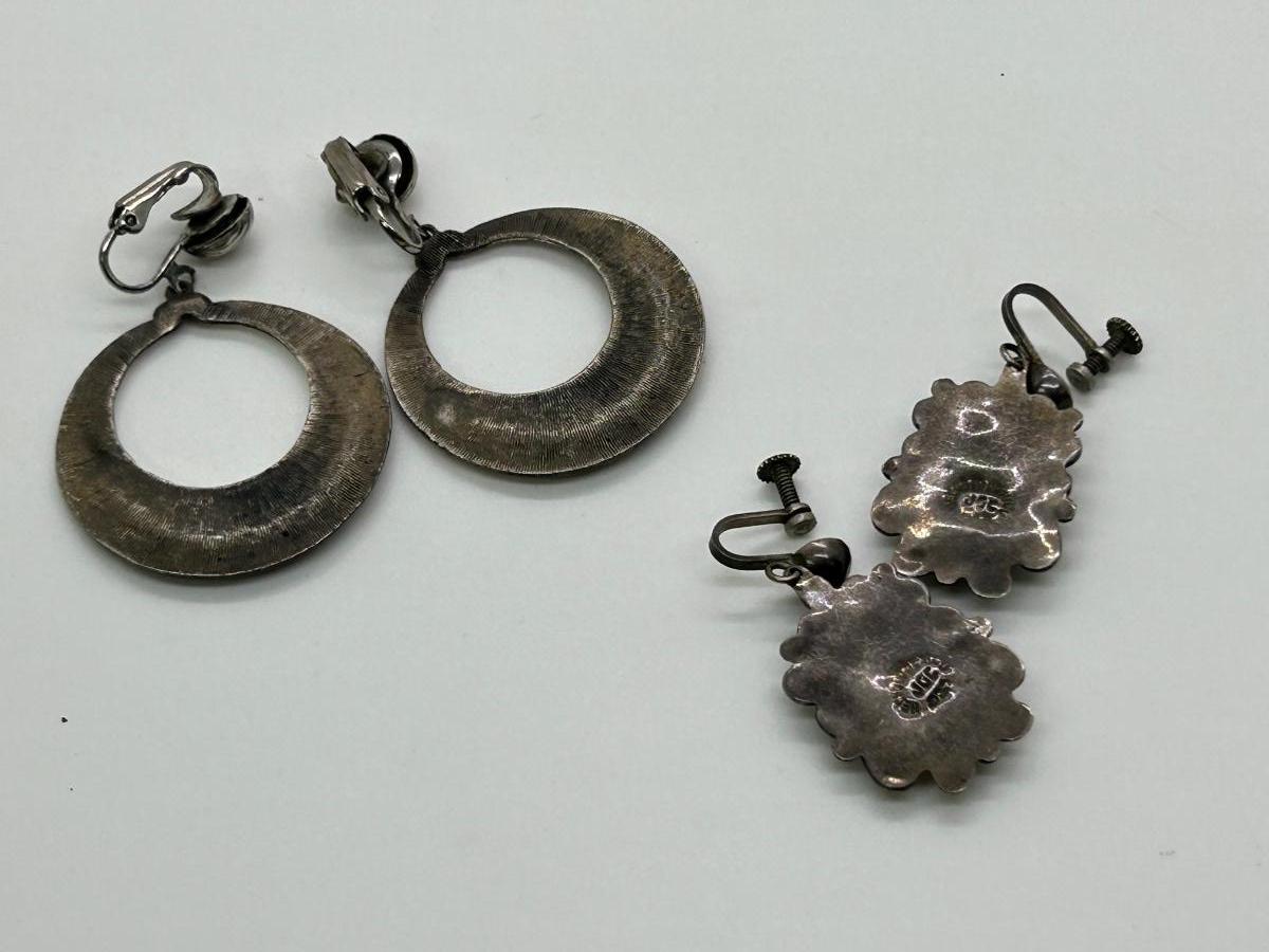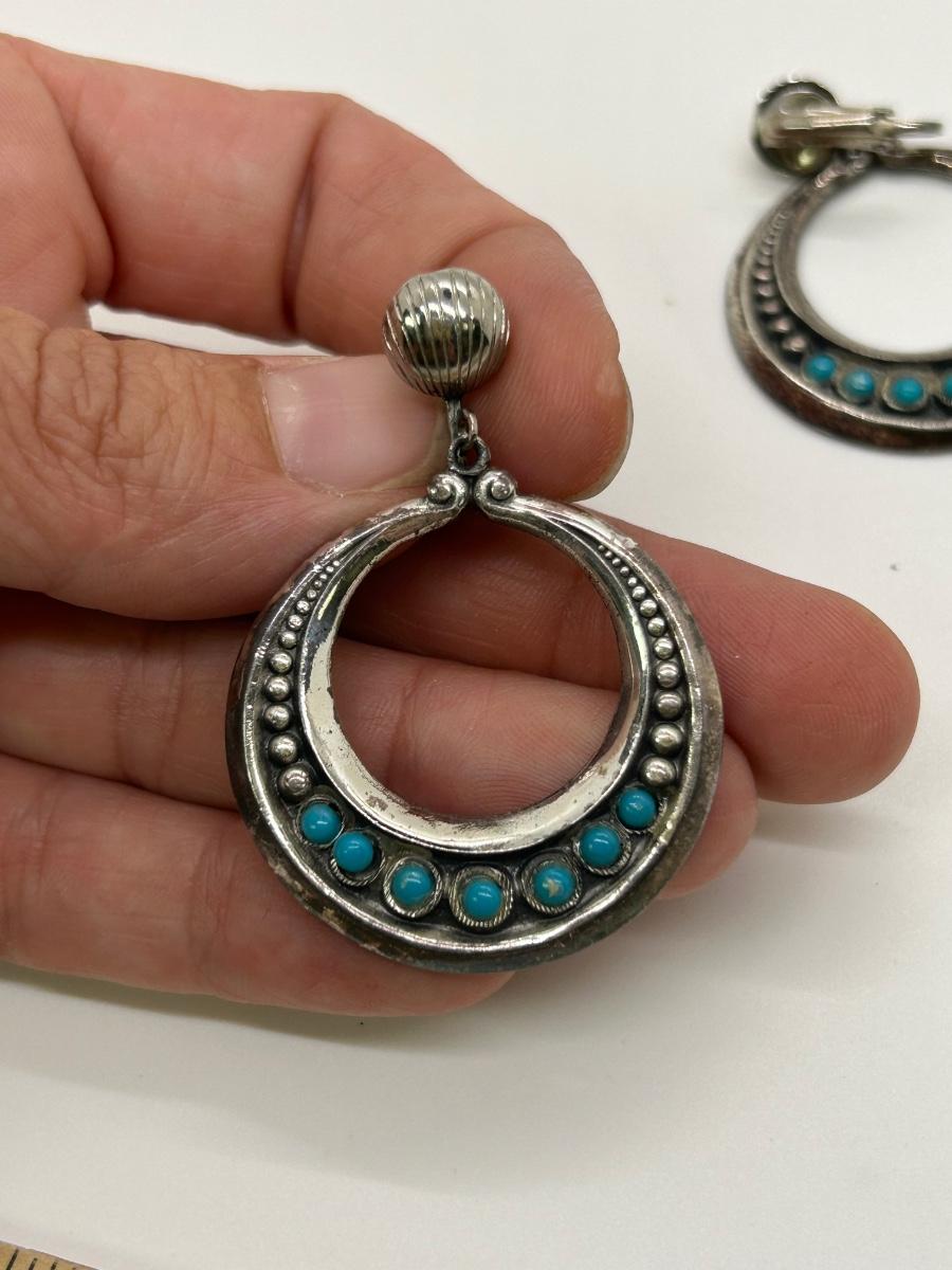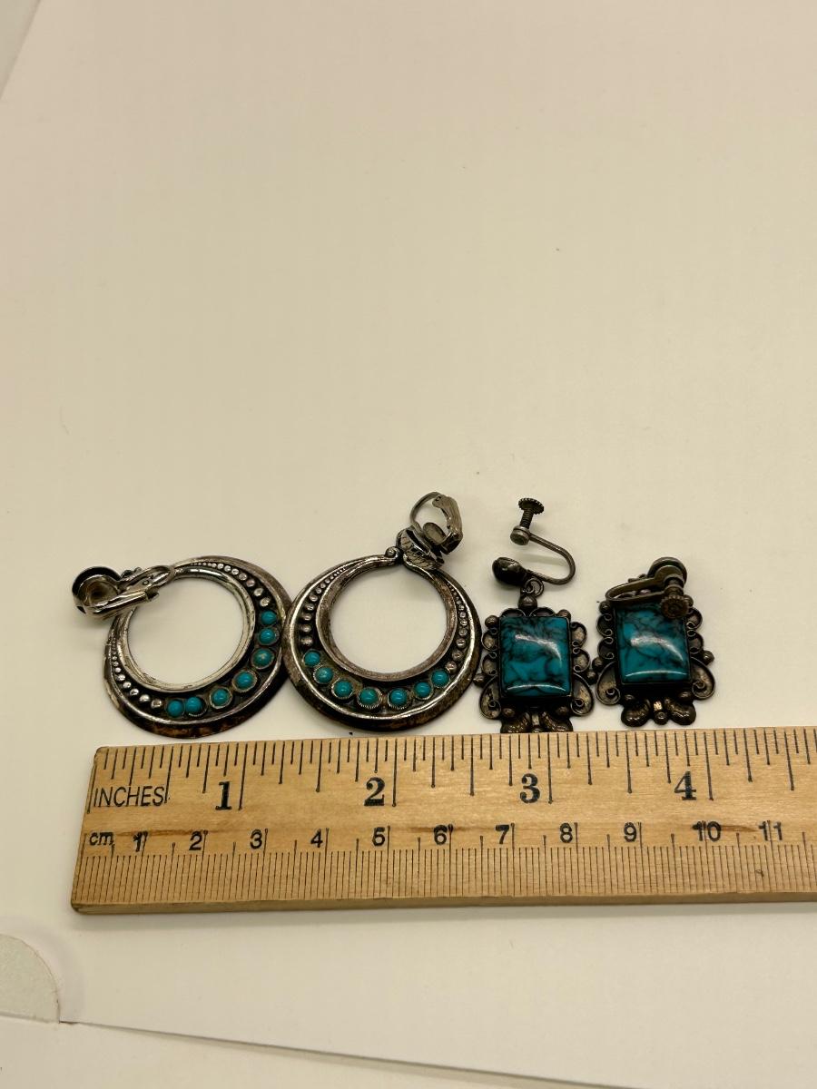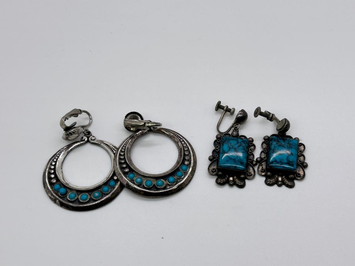 Two Pairs of Vintage Southwestern Style Clip On Earrings Turquoise and Silver