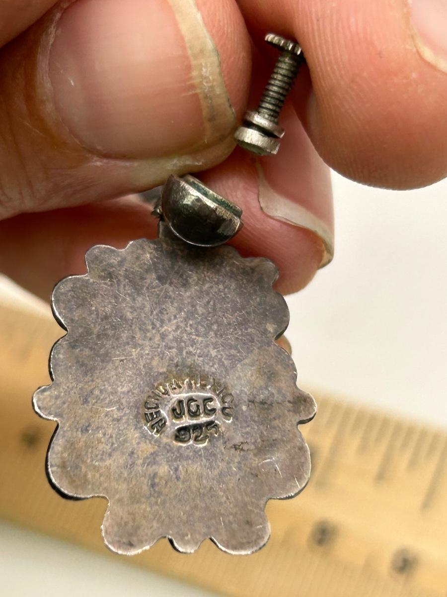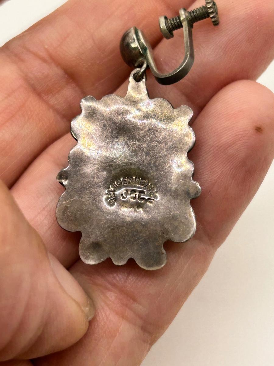 Two Pairs of Vintage Southwestern Style Clip On Earrings Turquoise and Silver. The round pair are unmarked, silver tone metal. The rectangular pair are marked 925 sterling.