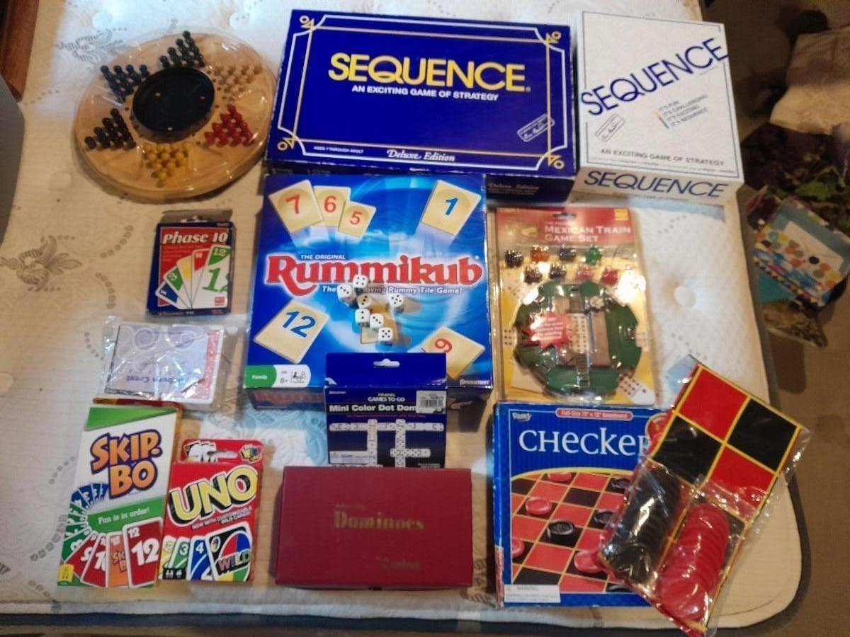 BOARD AND CARD GAMES, SEQUENCE, CHINESE CHECKERS, UNO, SKIPBO, AND MANY OTHERS!