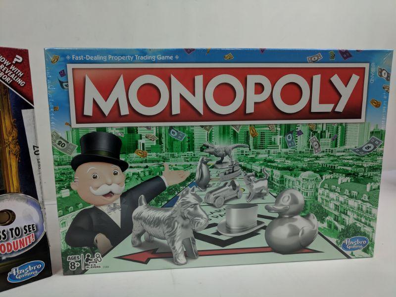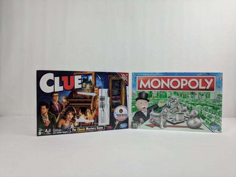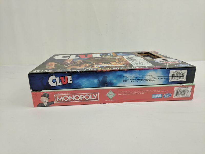 Board Games, Clue (Card-Revealing Mirror) & Monopoly - New