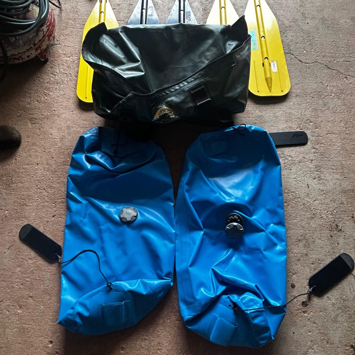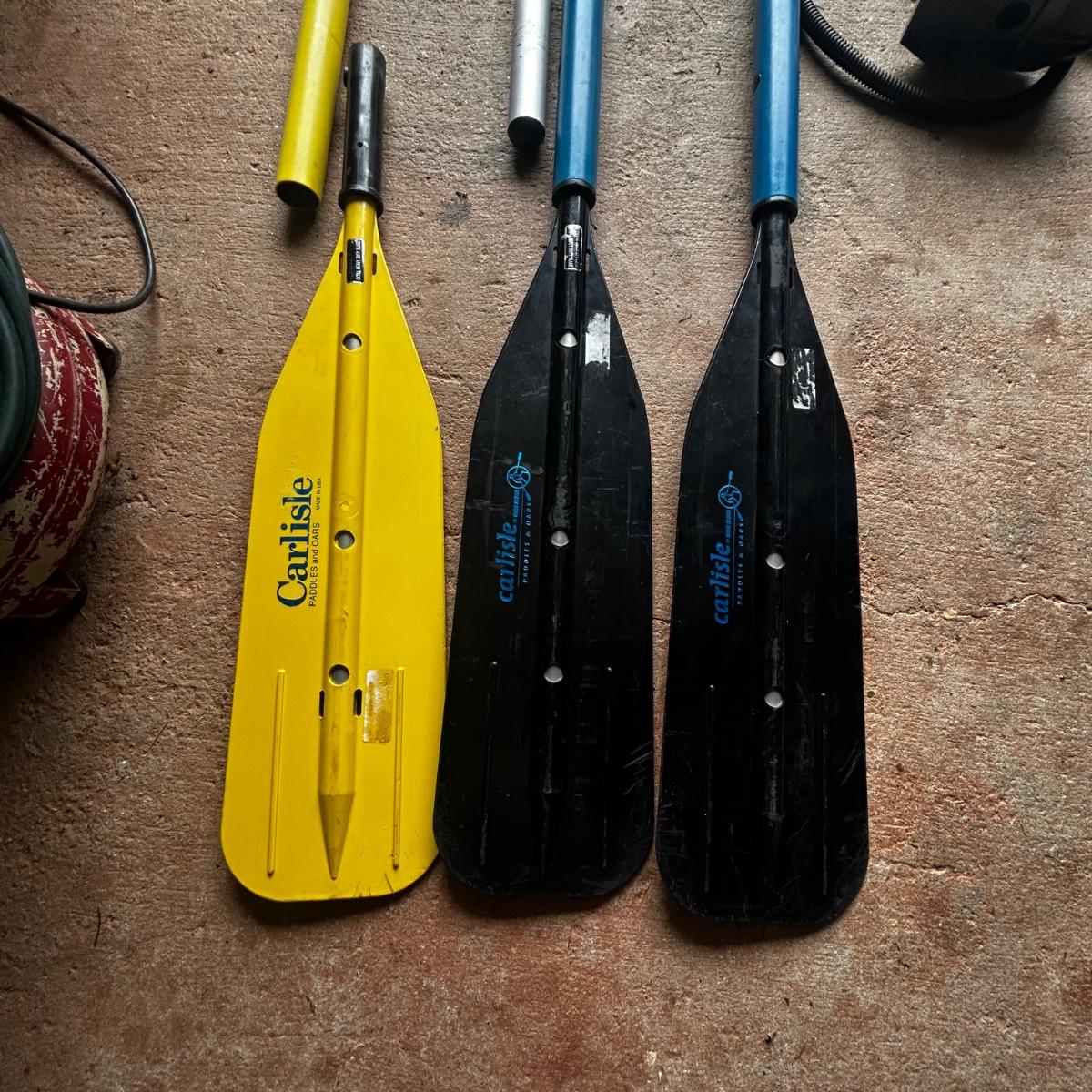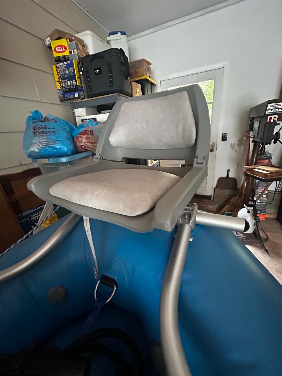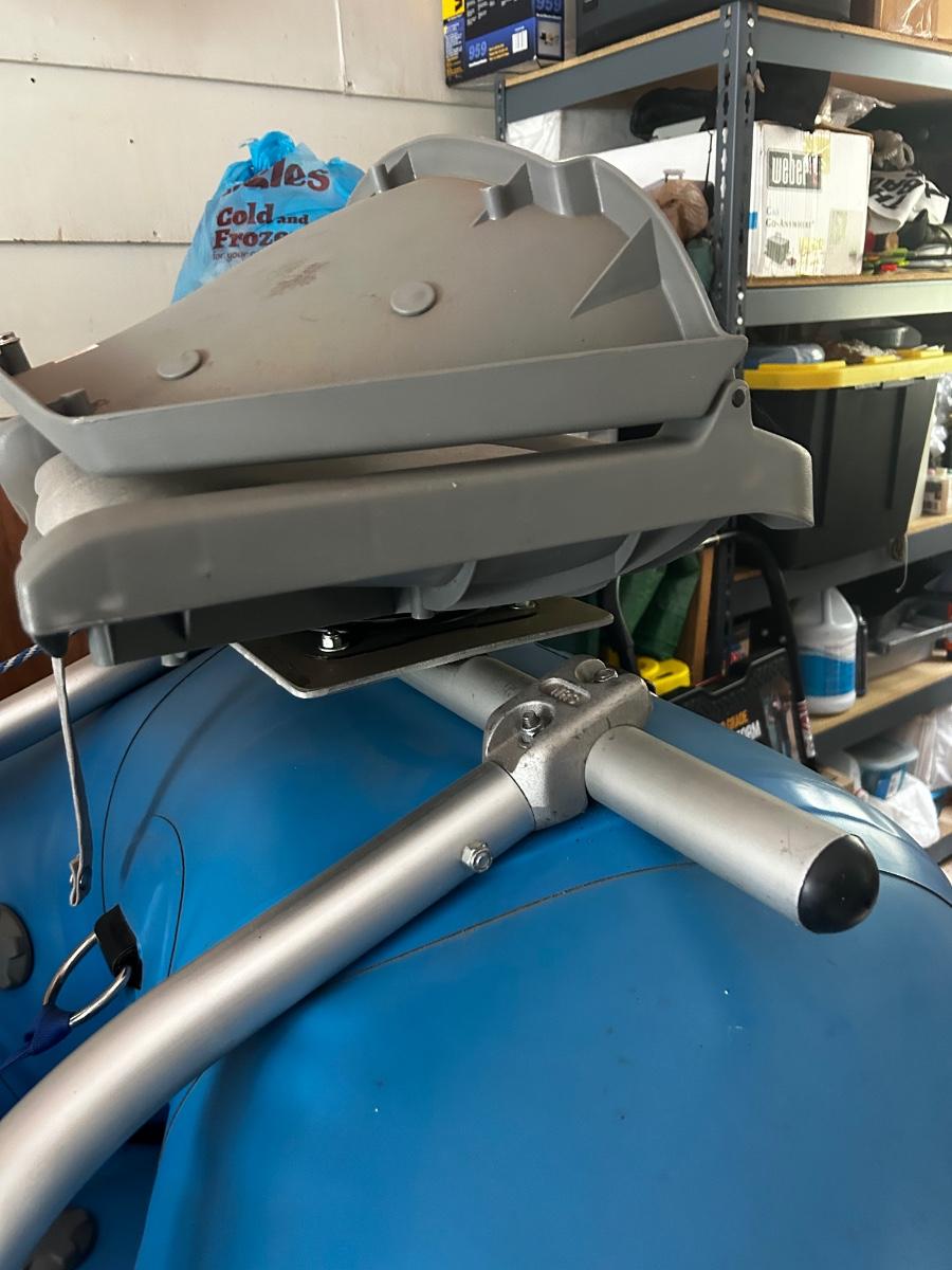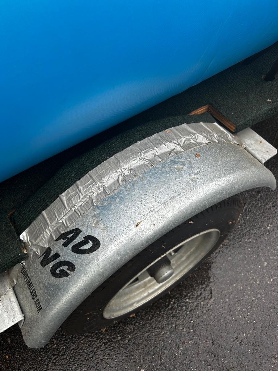 2001 NRS Giant Slalom Sport boat 1035 bought new and used that season and only once in 2024. Unit has been garage kept. Boat inflated with no leaks is self bailing. Has frame for fishing, three seats, with replacement beam to replace back fishing seat if desired. Two blue ores with sleeves and counter balances, three yellow ores also included. All have removable paddles. One NRS rescue rope bag, Leafield pressure gauge, repair kit, NRS hand pump, pair of shorter ore mounts alternatives. There are two thwarts for white water use if frame is removed (only four straps holding in place). Raft comes with titled Road King boat trailer that has been modified to have a carpeted plywood mount and 2.5" roller bearing to make for easy one person load and unload. Full unit measurement is with boat on trailer is 17'x78"