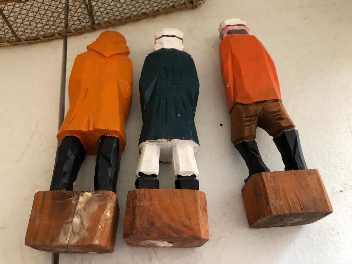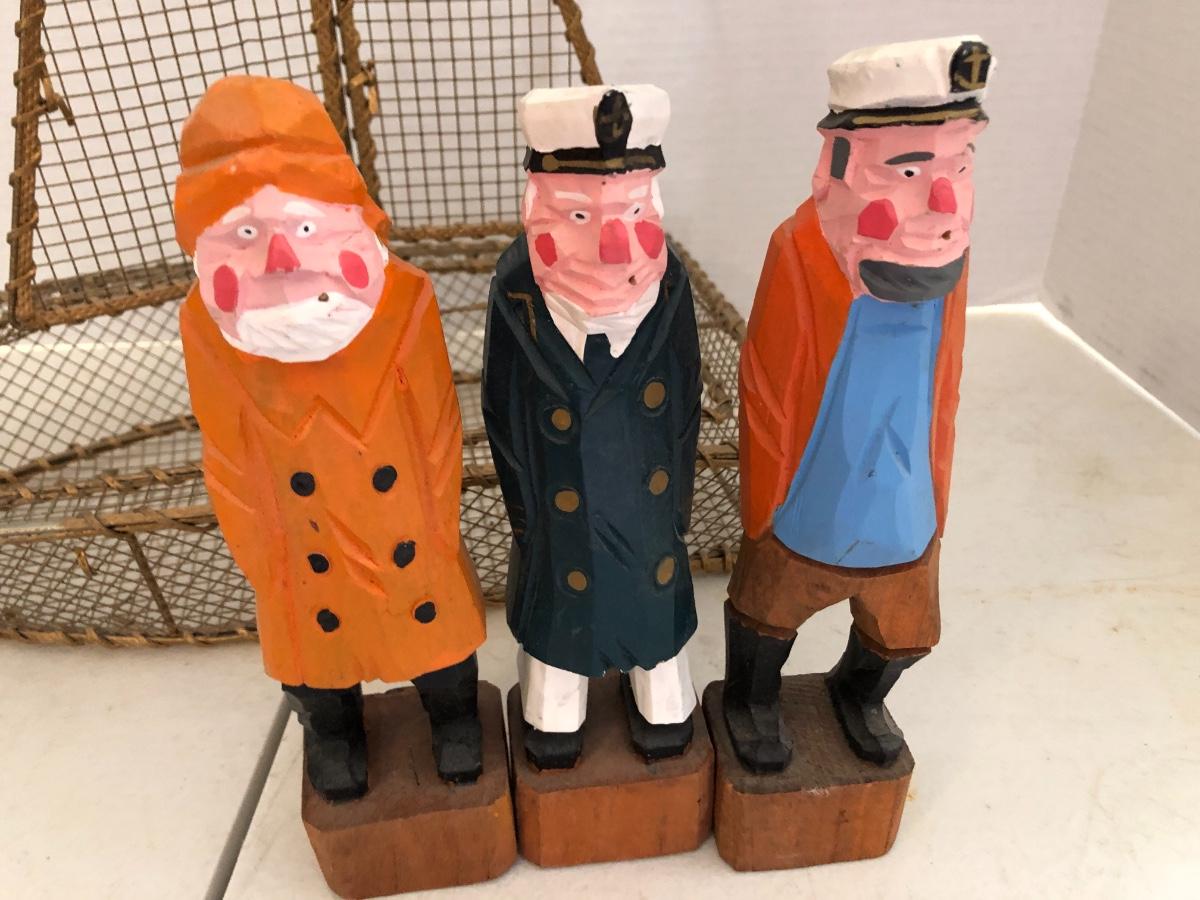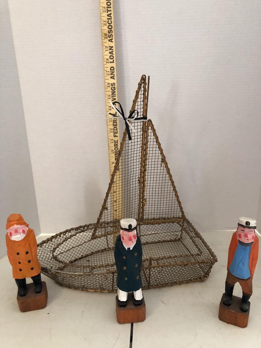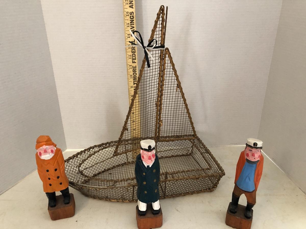 Nautical Decor -Boat Plus 3 Carved Wood Sea Captains