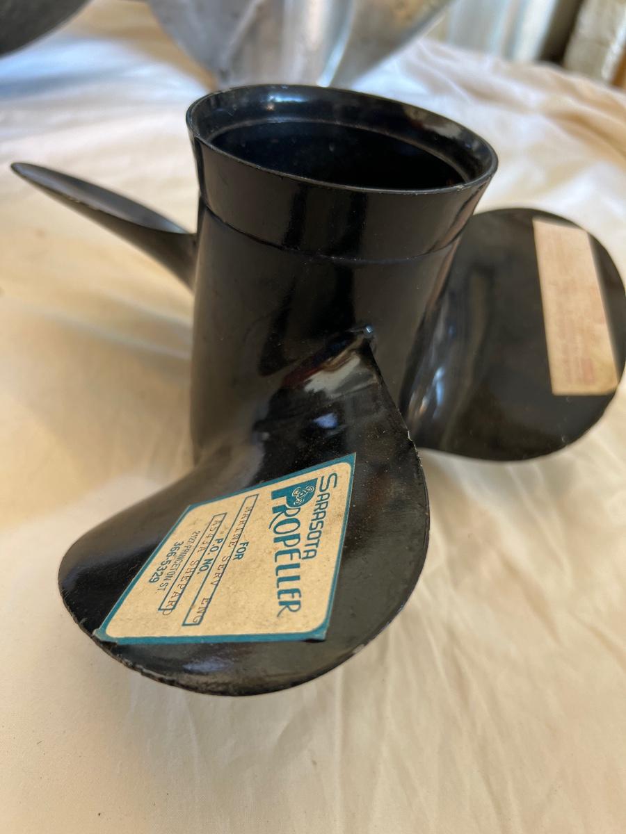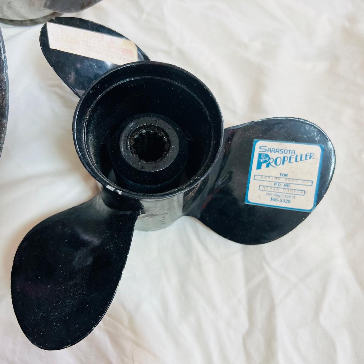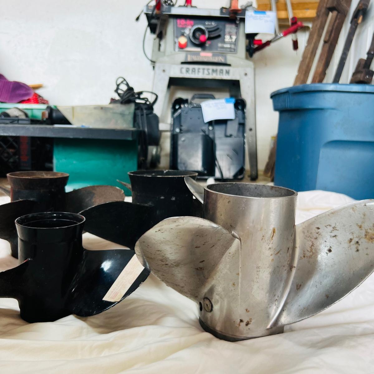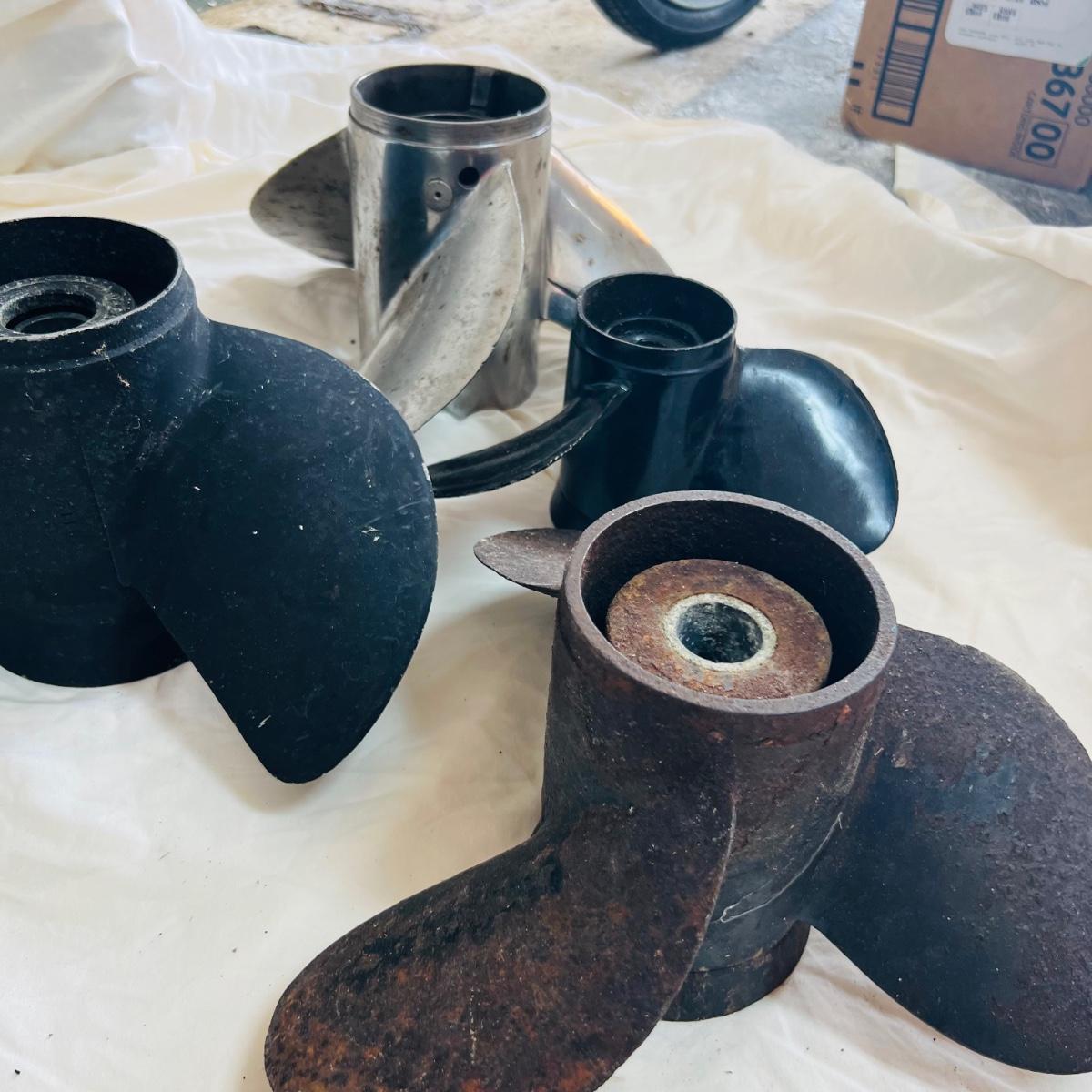 Lot includes four boat props. Largest measures 13”W, small black prop like new and measures 9”W.