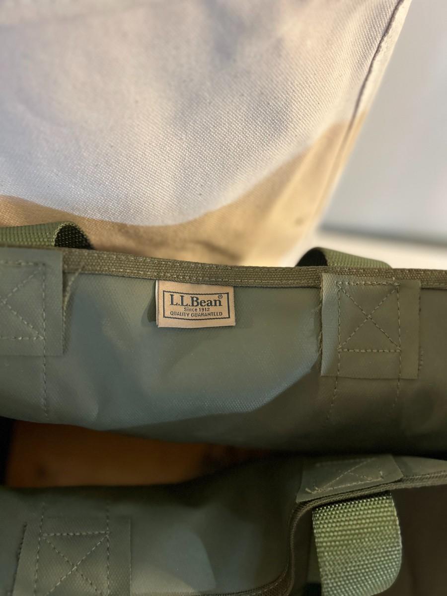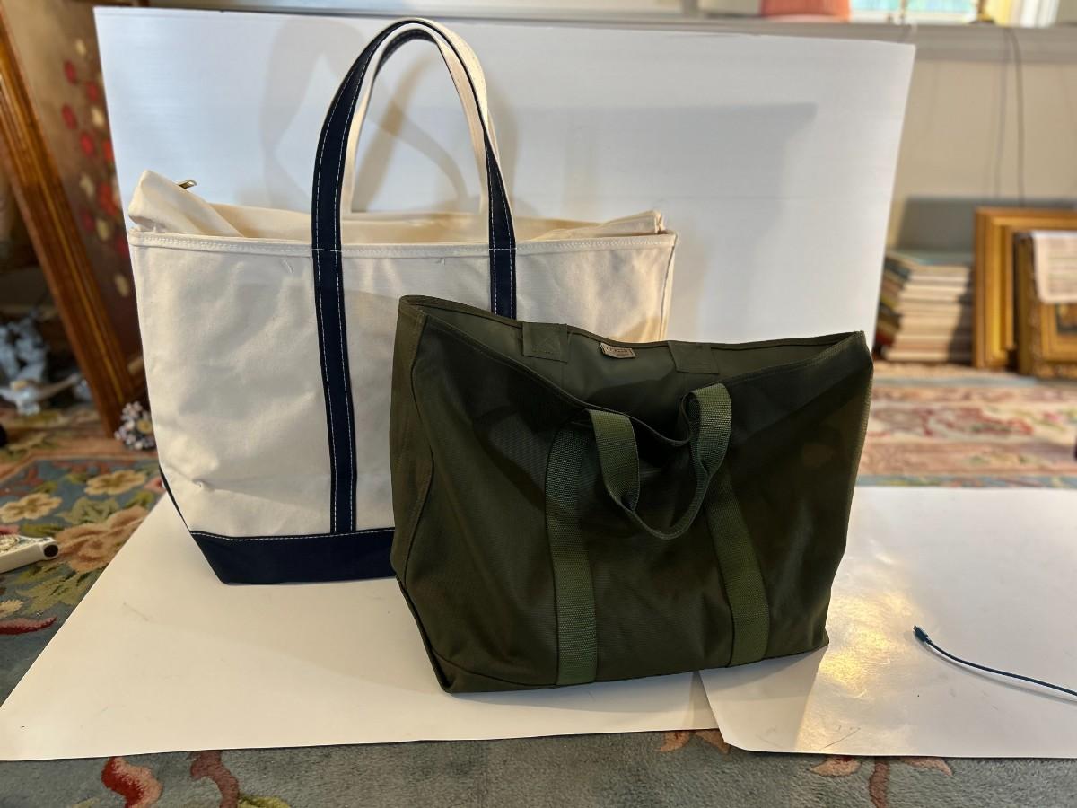 Two Vintage Lands End totes, large measures 18"inches tall, green is lined for easy cleaning
