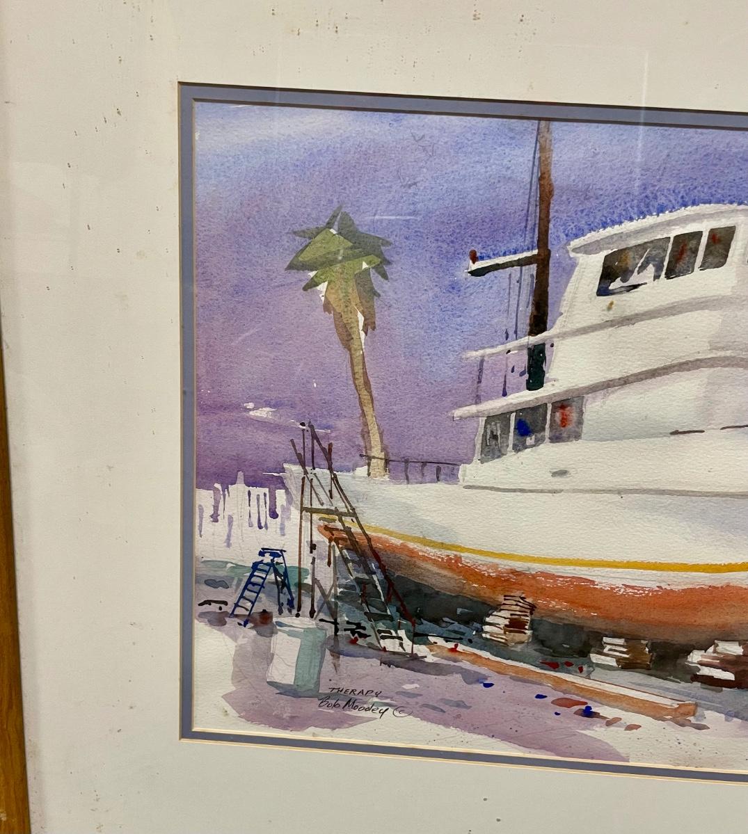 Local Newport Beach watercolor artist Bob Moodey. Framed painting measures approx. 25" x 30".