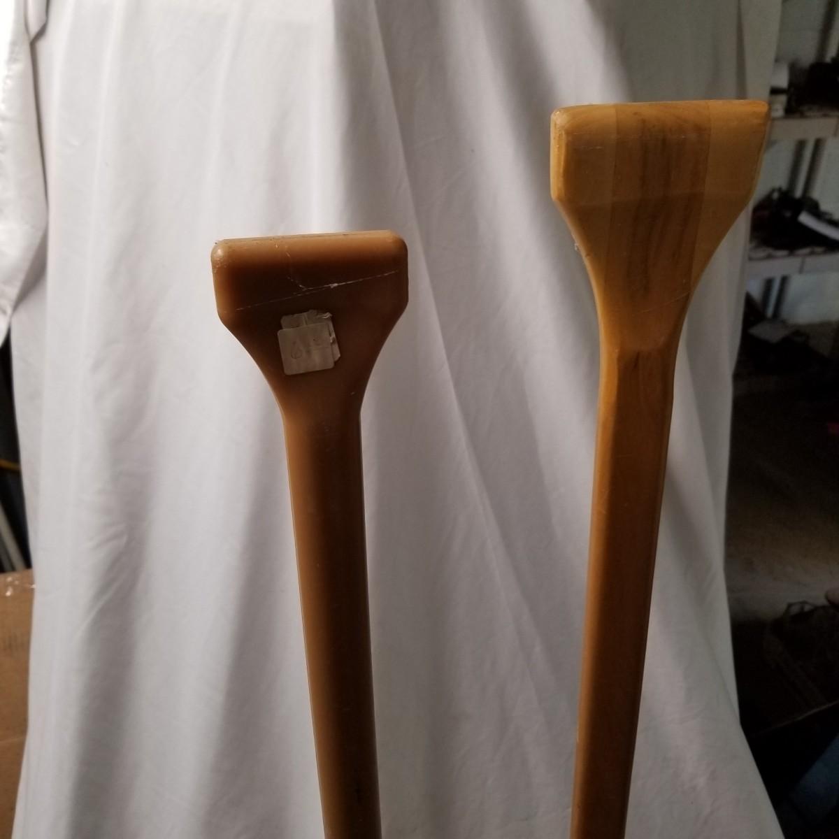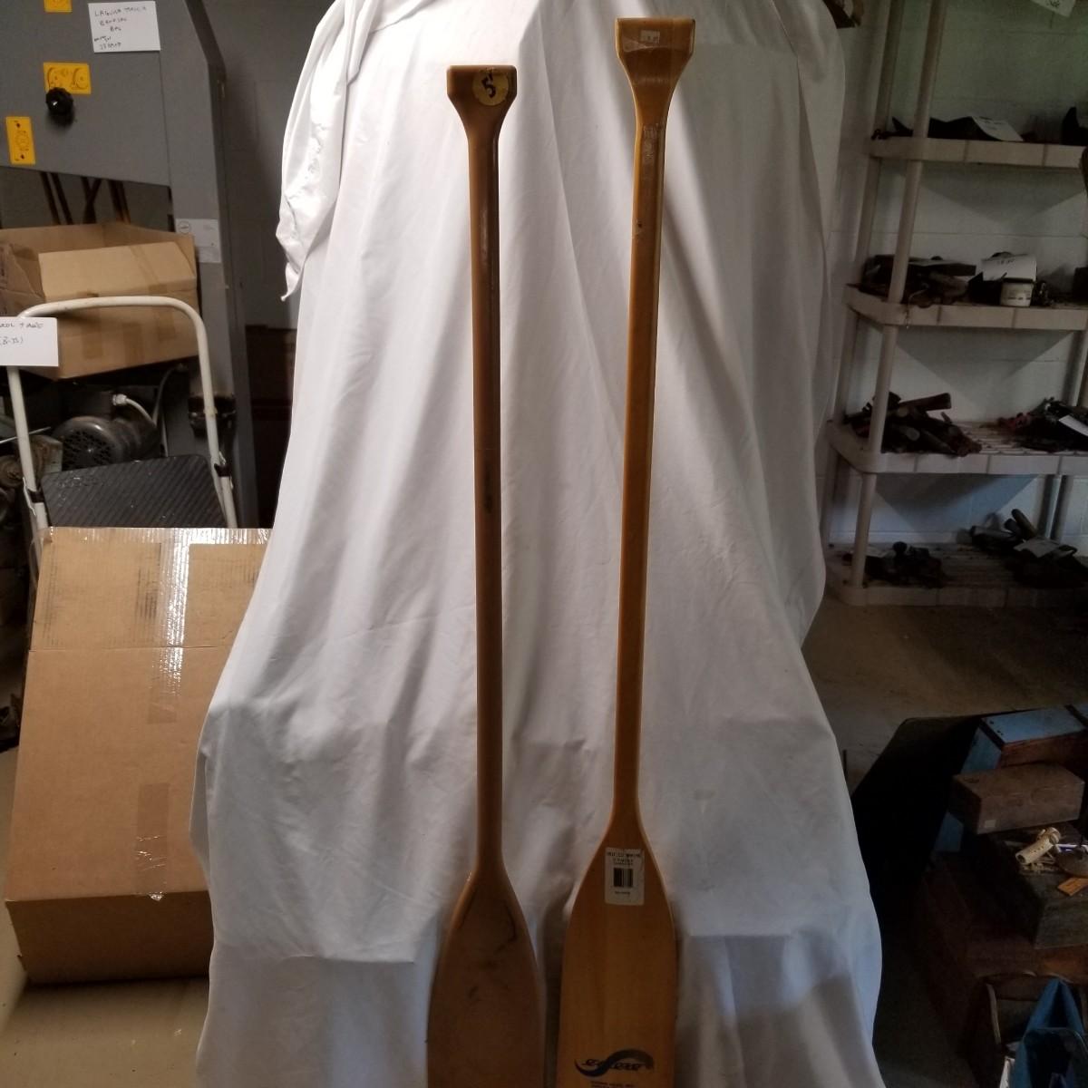 Two five foot paddles, one wooden, one synthetic.   No nicks or chips.  Local pickup only.