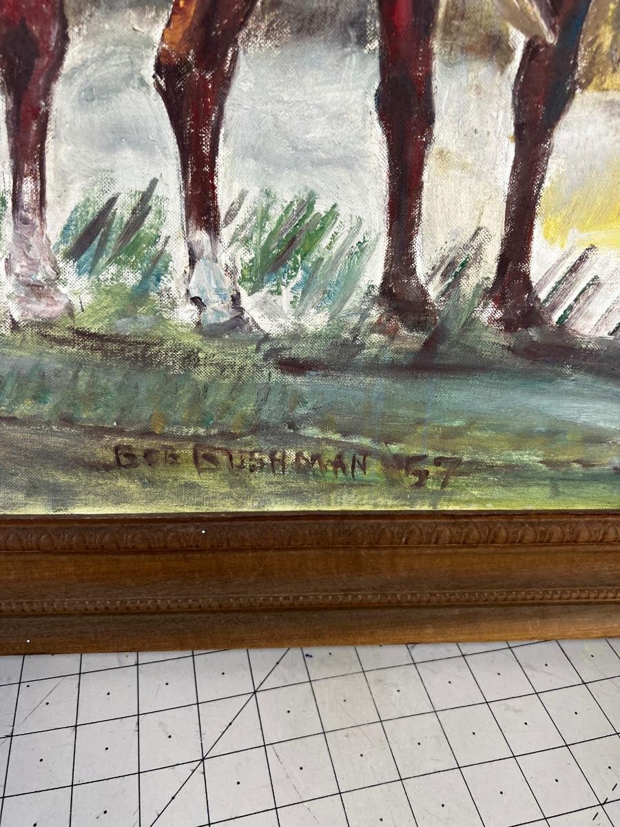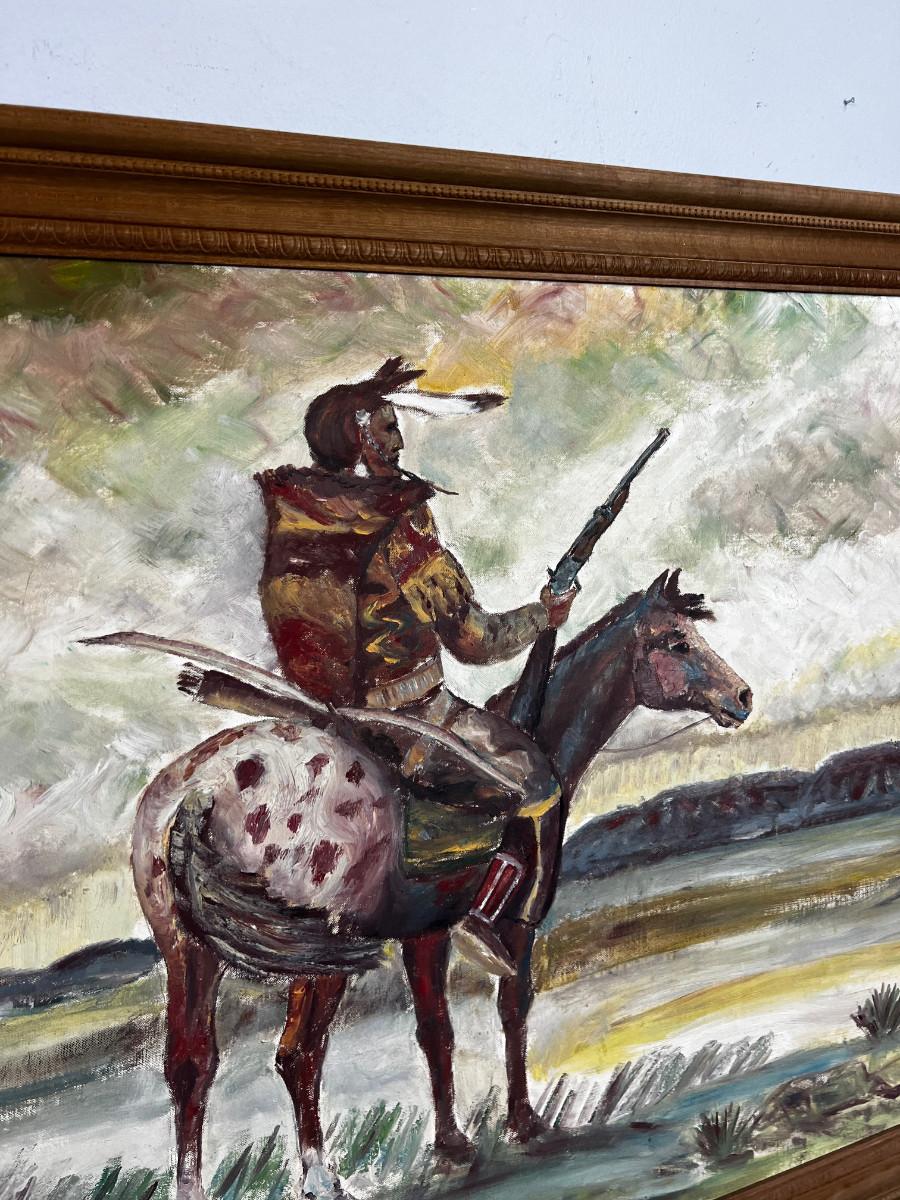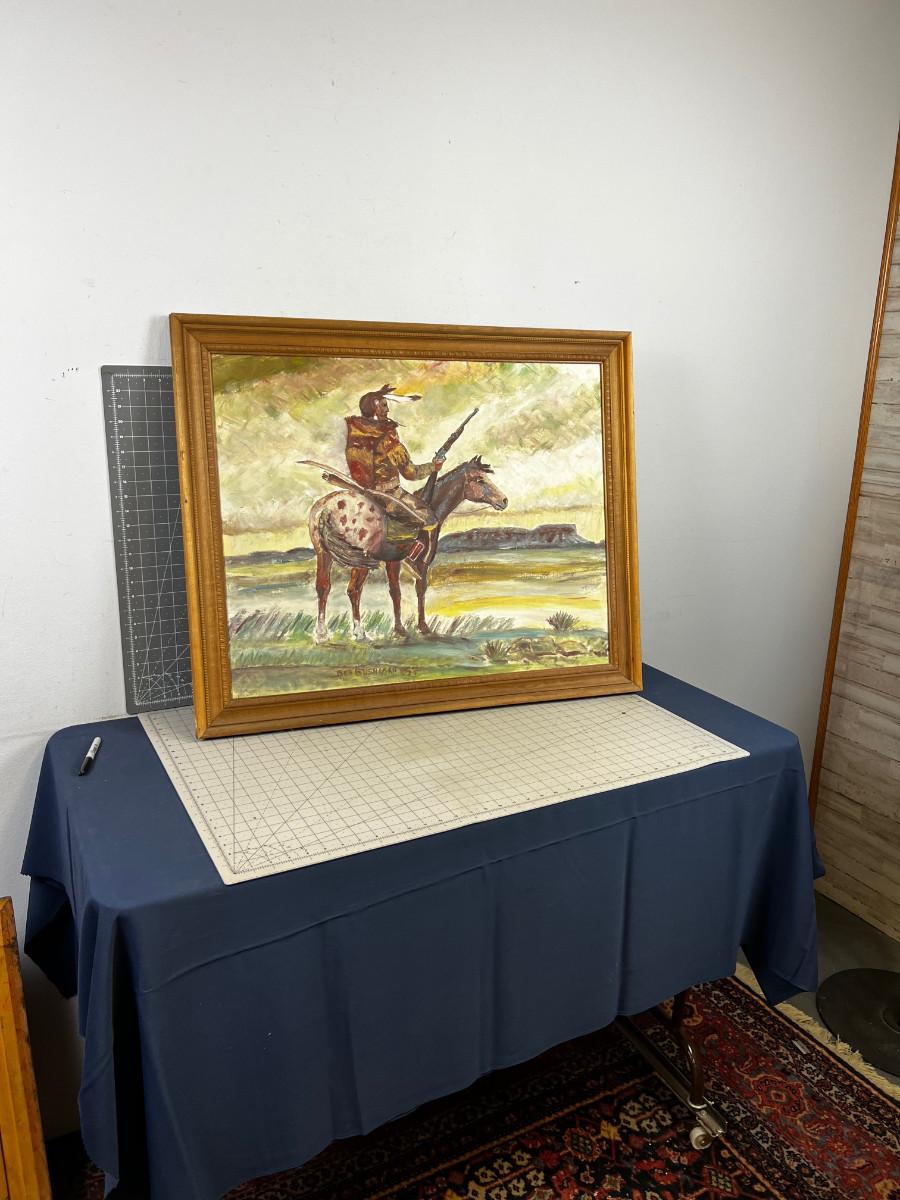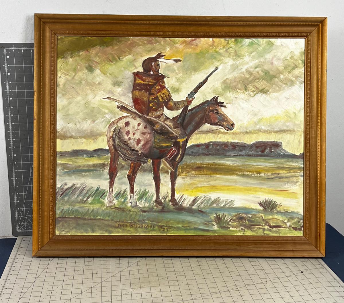 Bob Bushman 1957 Oil on Boards Native American on Horse Back