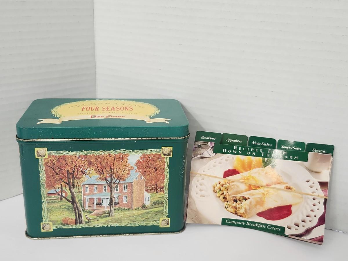 Bob Evans Celebrating Four Seasons Down On The Farm Collectible Tin With Recipe Cards Vintage