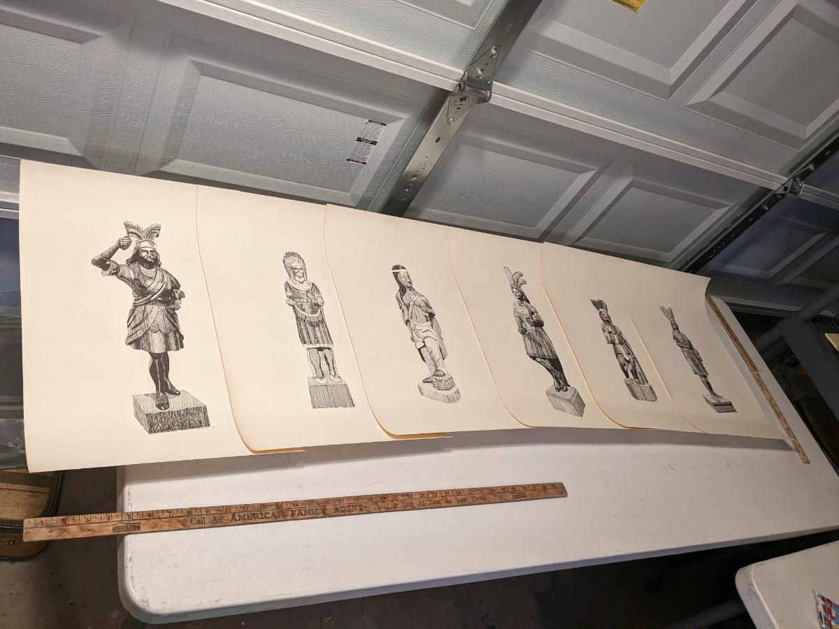 BOB GOLLEDGE Vintage Lithographs 1974-75 Cigar Store Indians