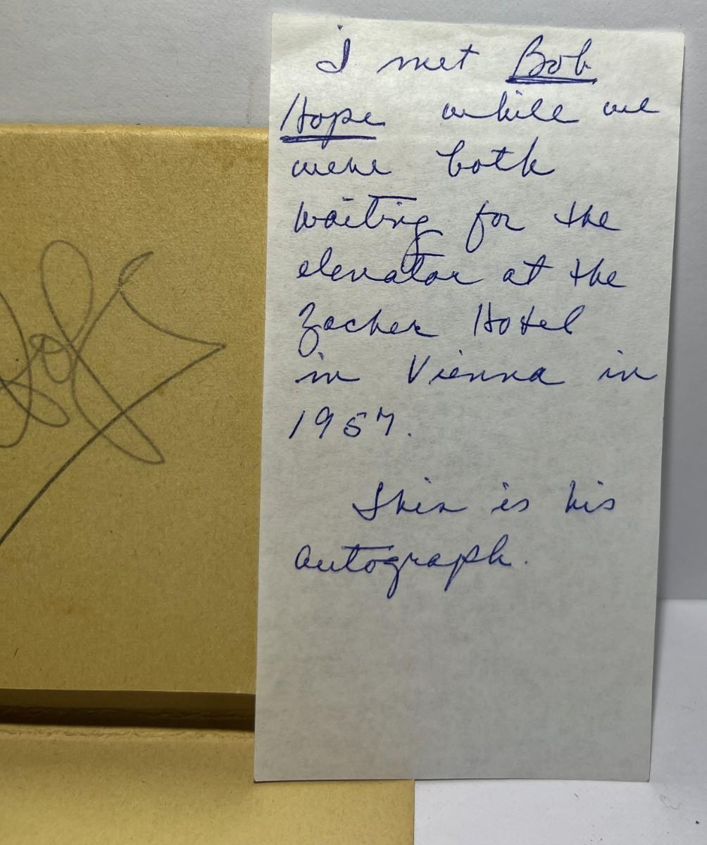 BOB HOPE Hand Signed Autograph in Vienna Austria 1957 in Very Good Preowned Condition. $7 Domestic Shipping.