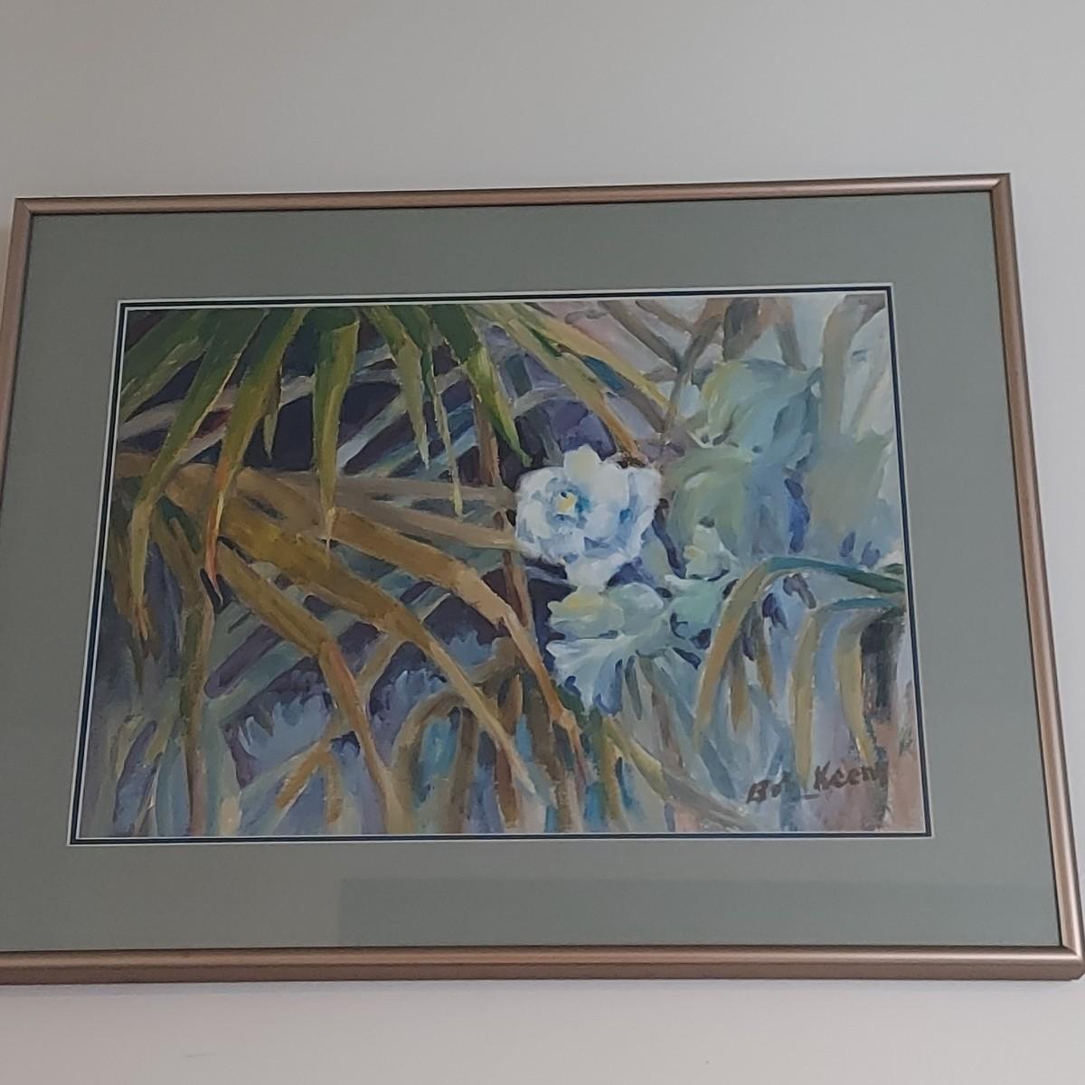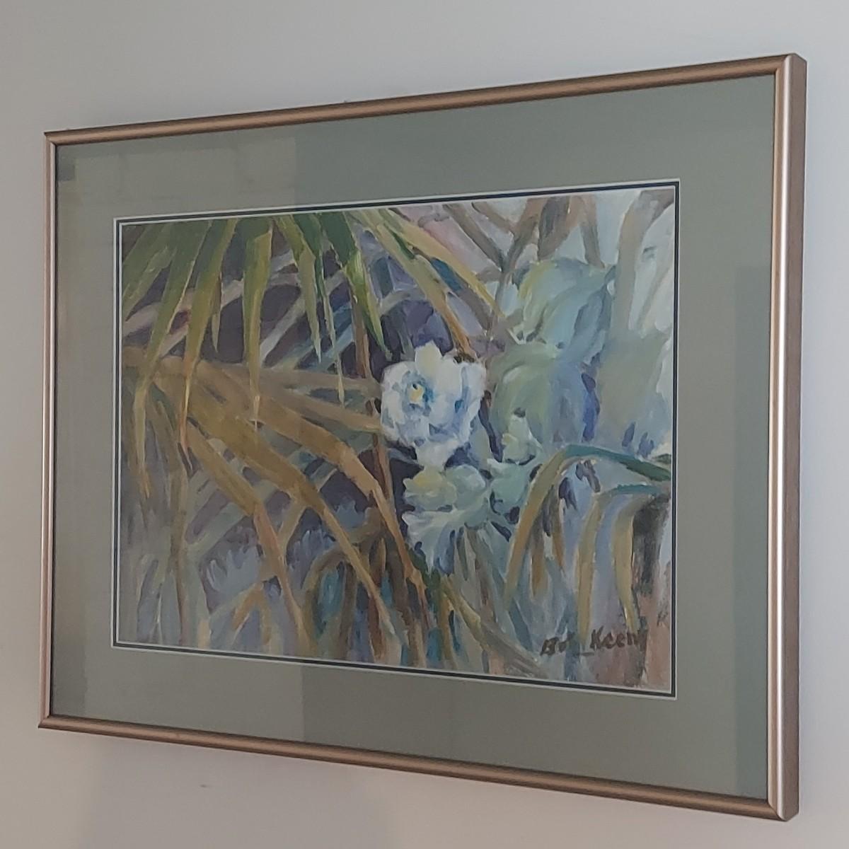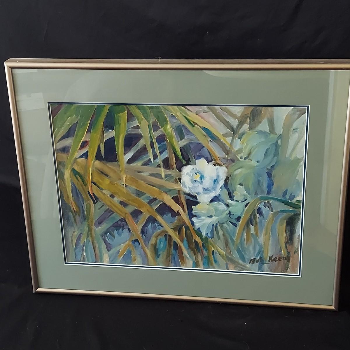 Still Life art by Bob Keeny that is double matted and under glass. The metal frame measures 19” x 15"H. This appears to be a painting but is difficult to tell without unframing it. Please see photos for details. Shipping available.Shipping can be costly. We suggest contacting our preferred local shipping provider, Postage Express, with dimensions and getting an estimate before bidding: (828) 255-9250 or shipping@postageexpressnc.com.