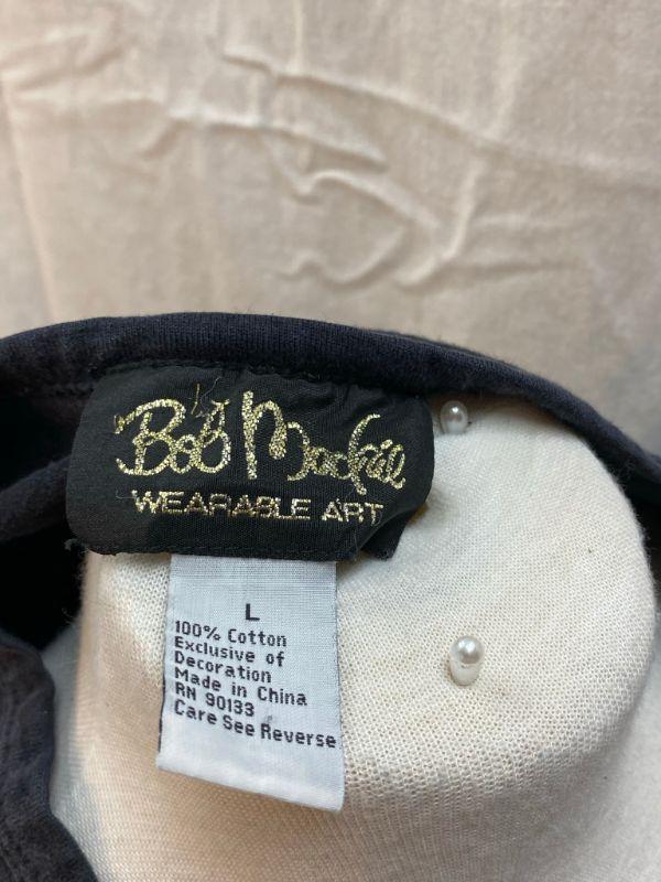 Bob Mackie Wearable Art Embroidered Black T Shirt Size Large YD#020-1220-02123