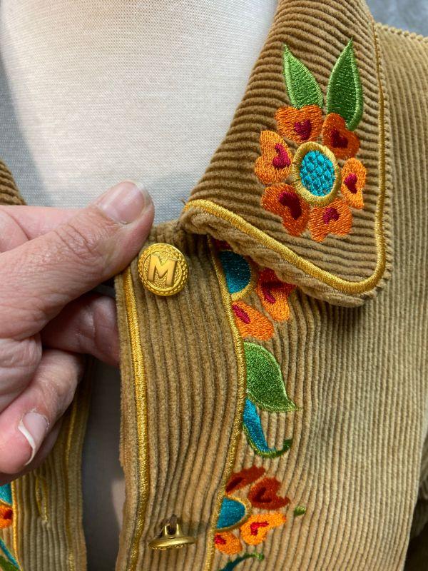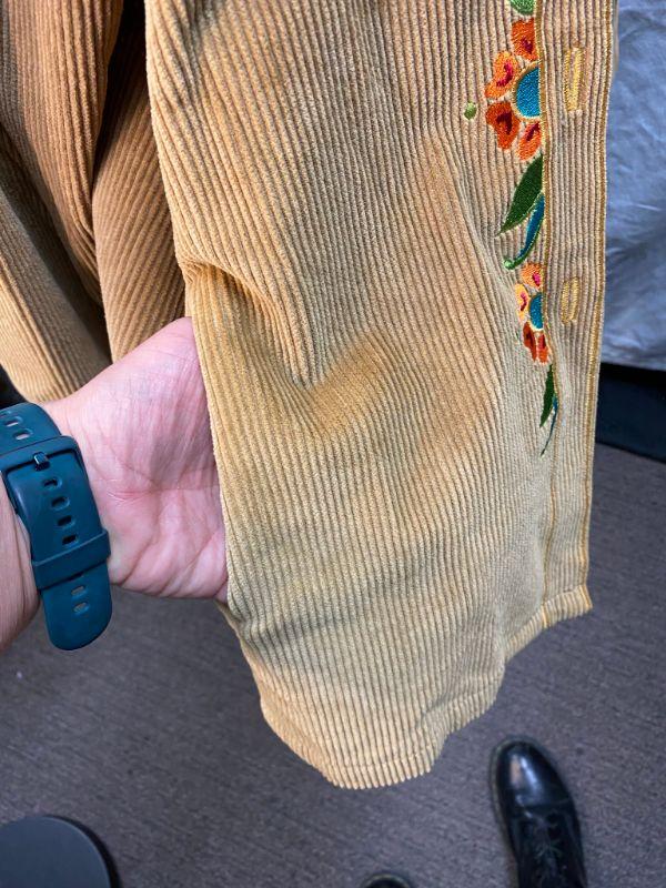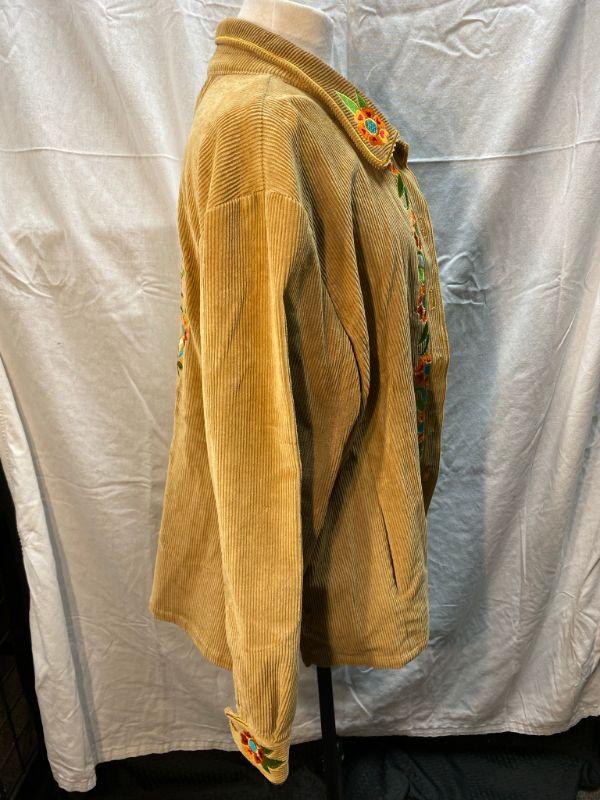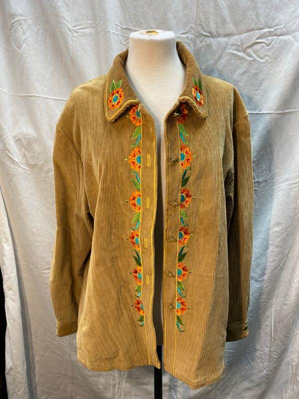 Bob Mackie Wearable Art Tan Corduroy Embroidered Button Up Long Sleeve Shirt Size XL YD#020-1220-02025