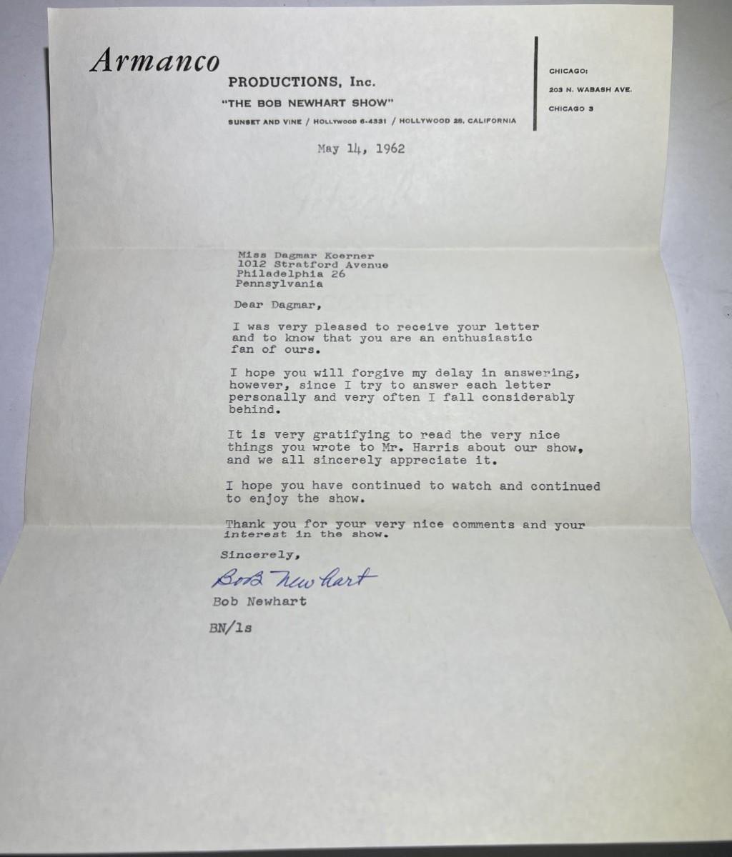BOB NEWHART Show Hand Signed Letter by BOB NEWHART Dated 1962 in Very Good Preowned Condition. $7 Domestic Shipping.
