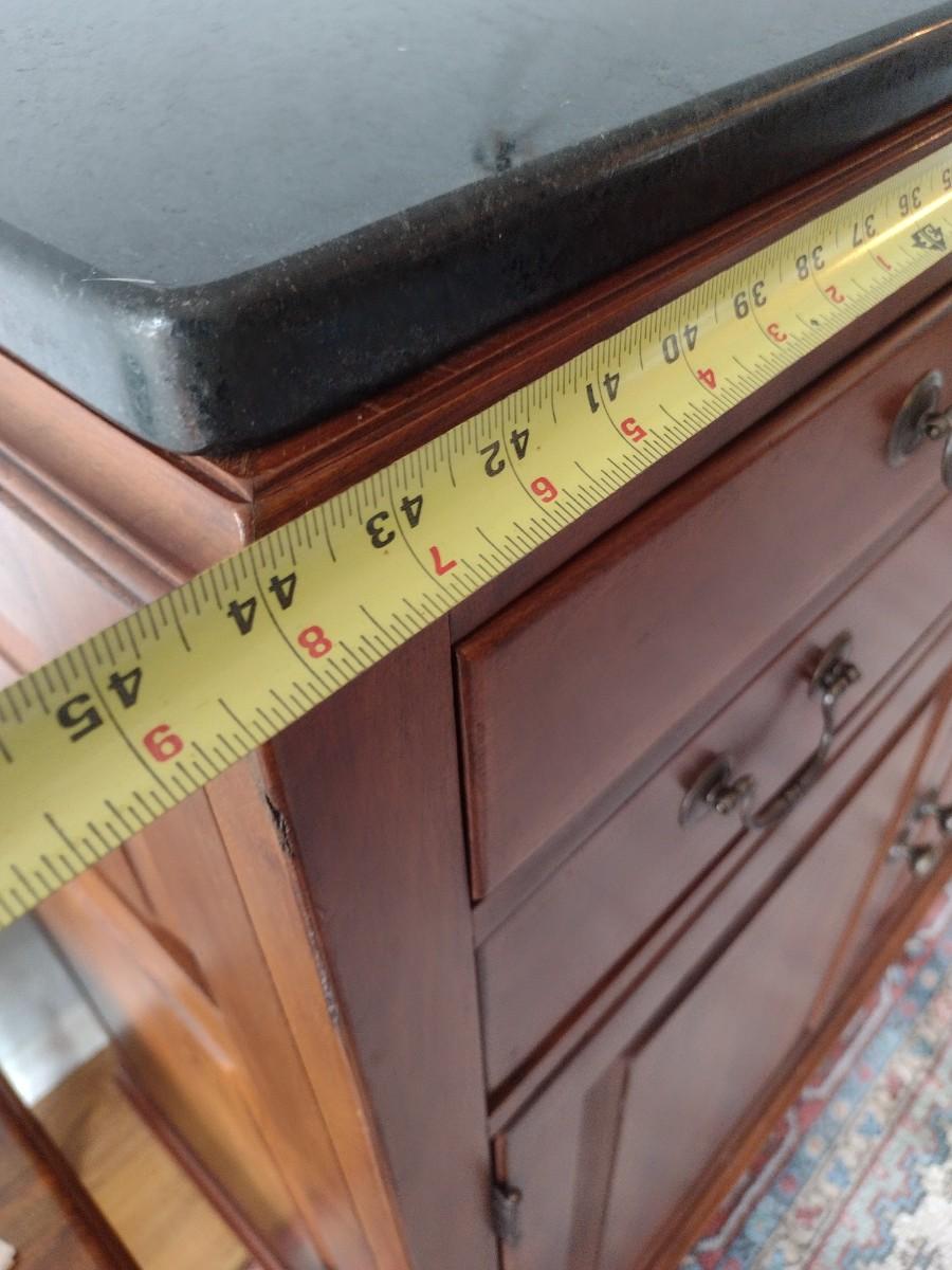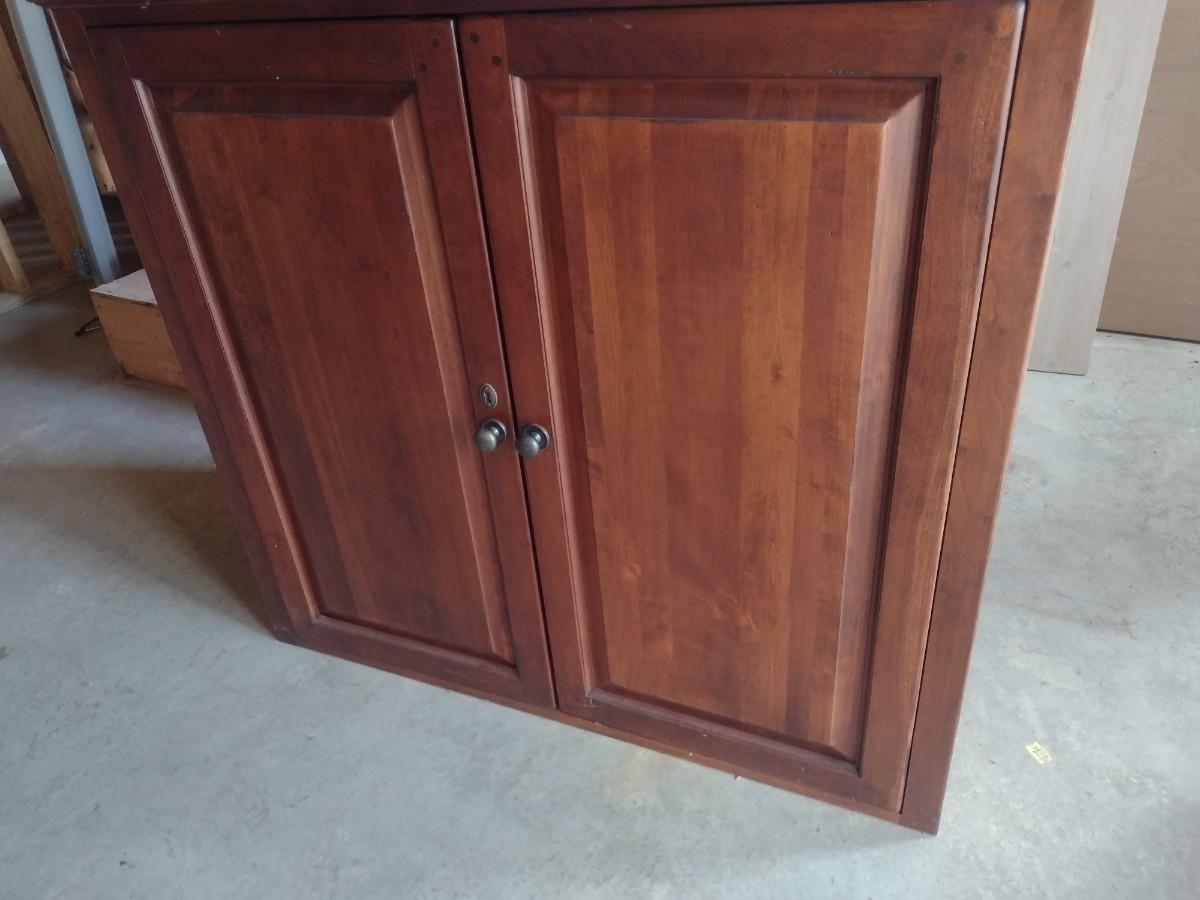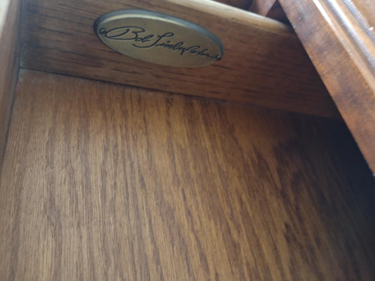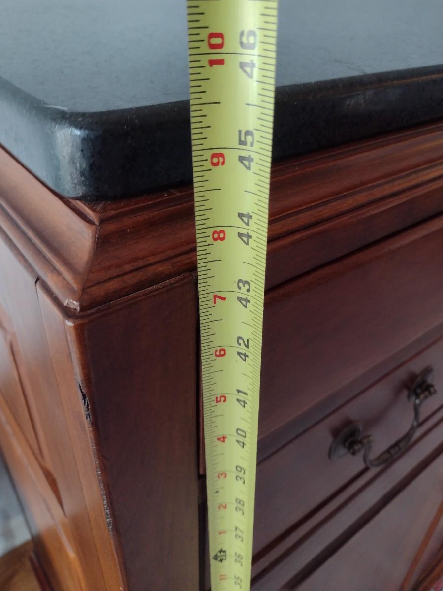 Bob Timberlake Cherry Wood Finish Two Piece Armoire and Media Cabinet with Added Granite Slab Topper. Bottom piece is on main floor and used as a buffet piece. Upper portion is media cabinet is downstairs. The slab was added later to allow as a table surface.