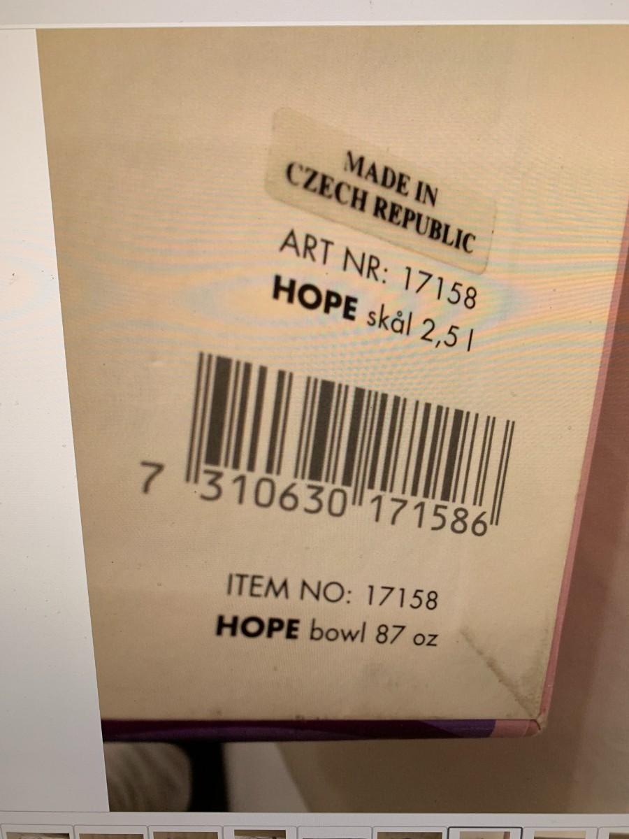 BodaNova Glass Bowl Czech Republic New in box Hope