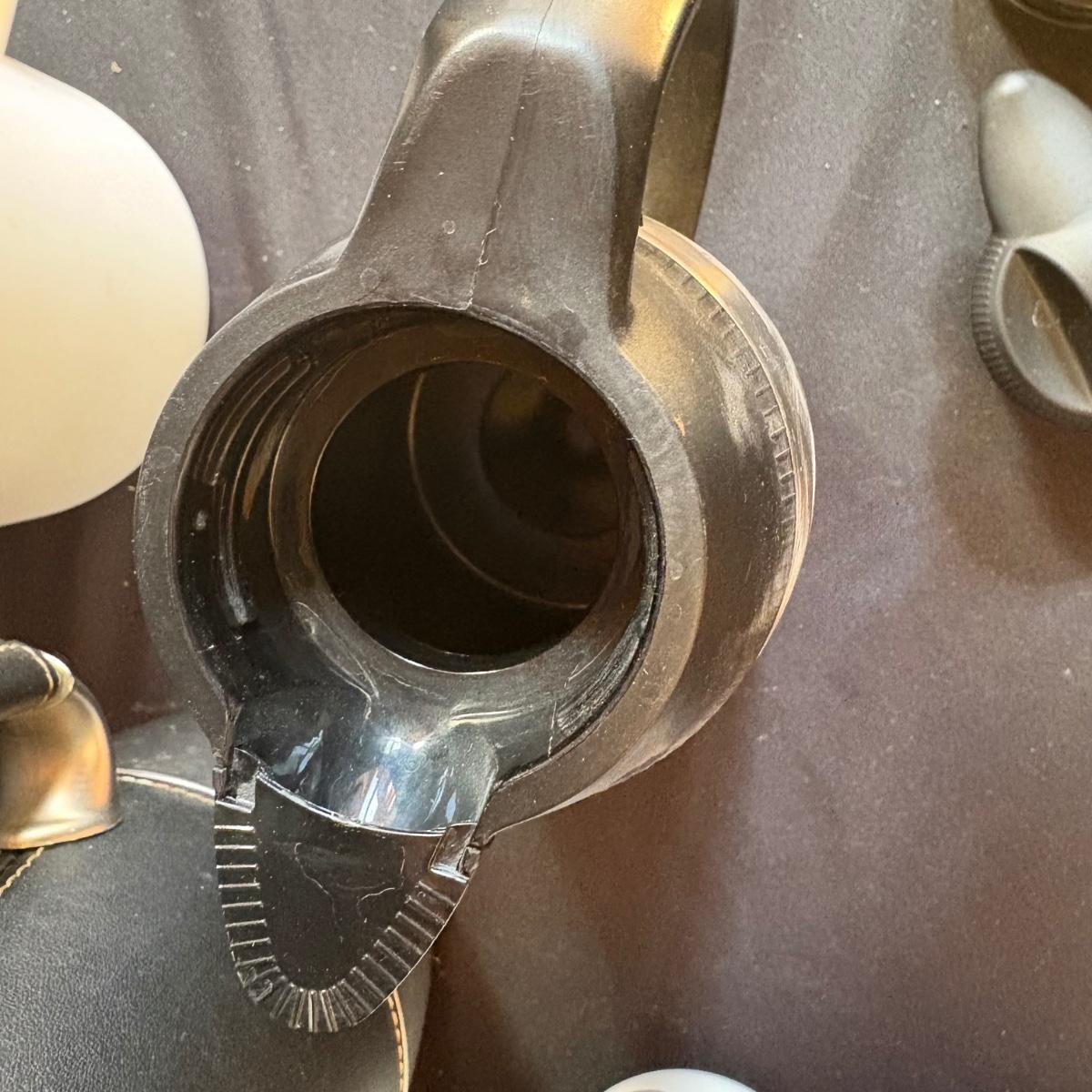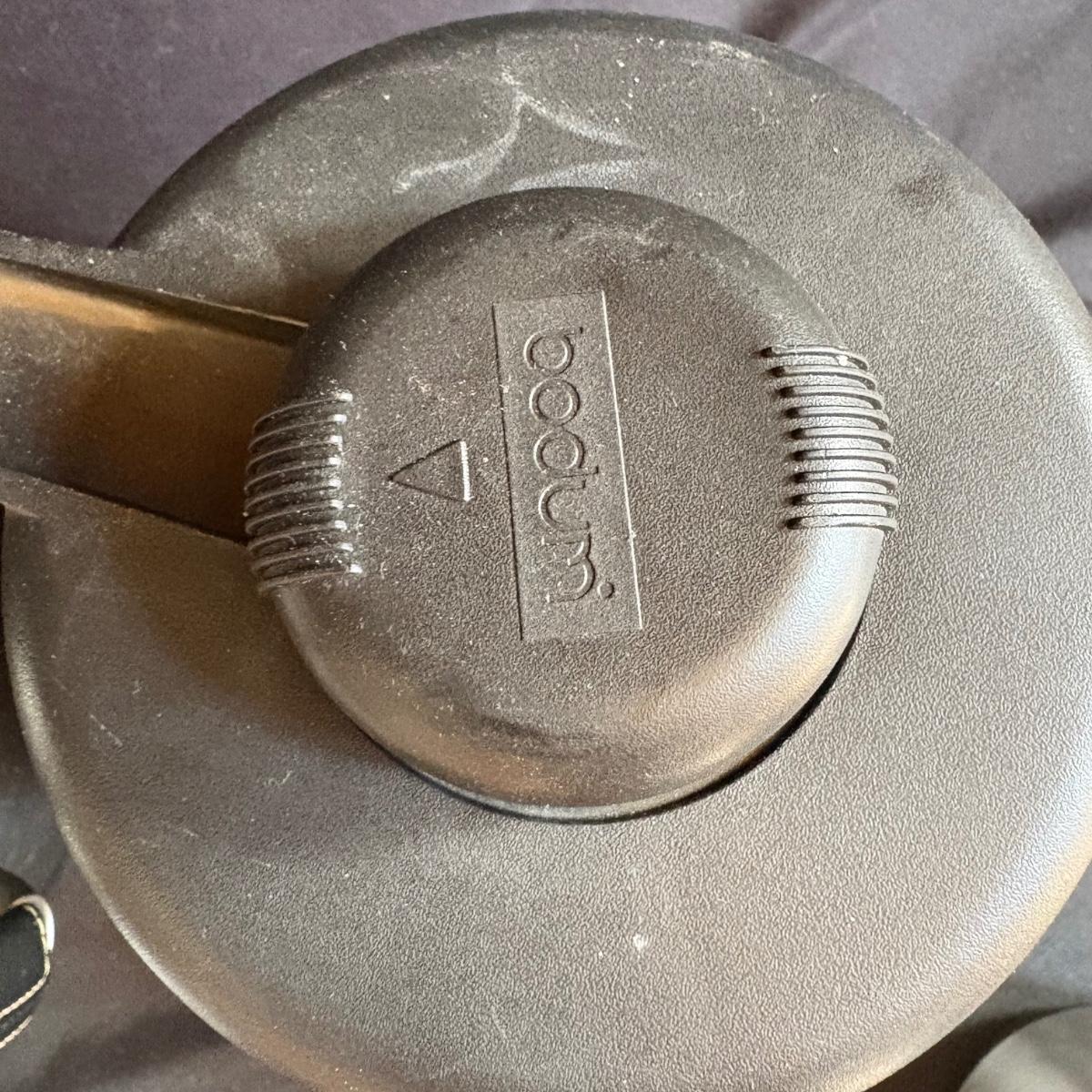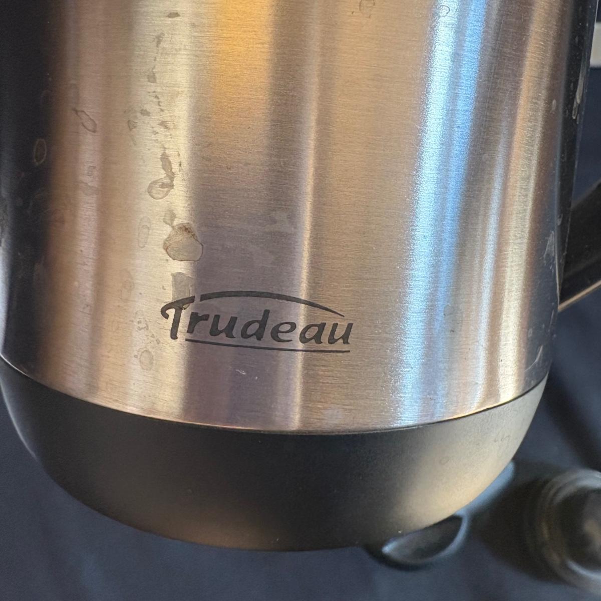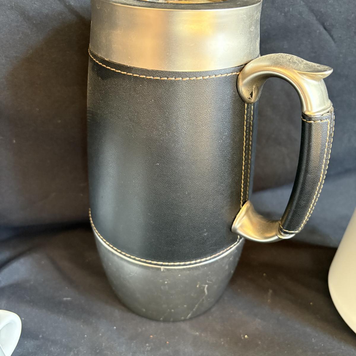 Trudeau 16 oz cream pitcher and 34 oz leather-look coffee carafe. Bodum carafe appears to be approximately 34 oz capacity. Shipping available.