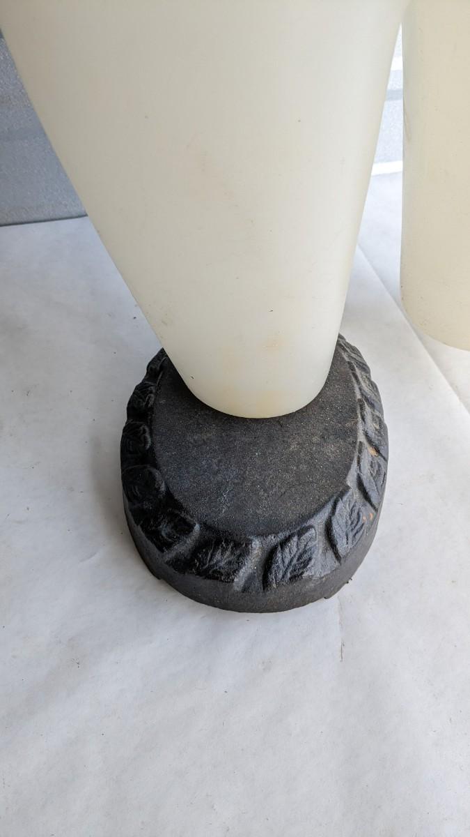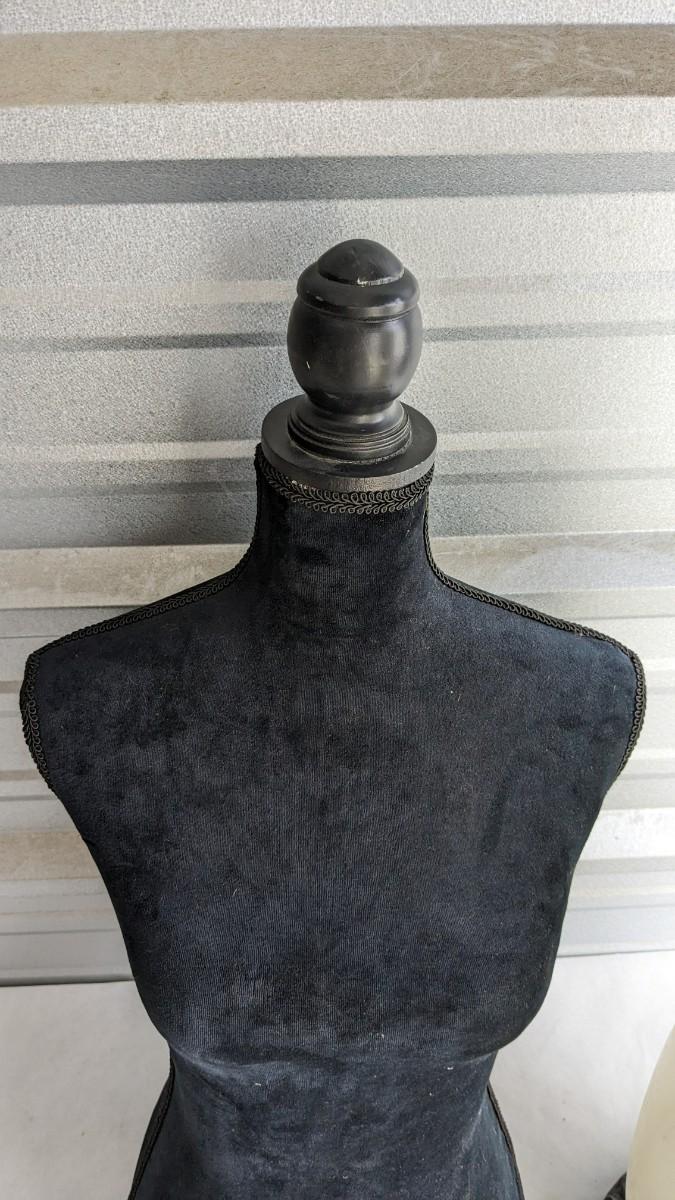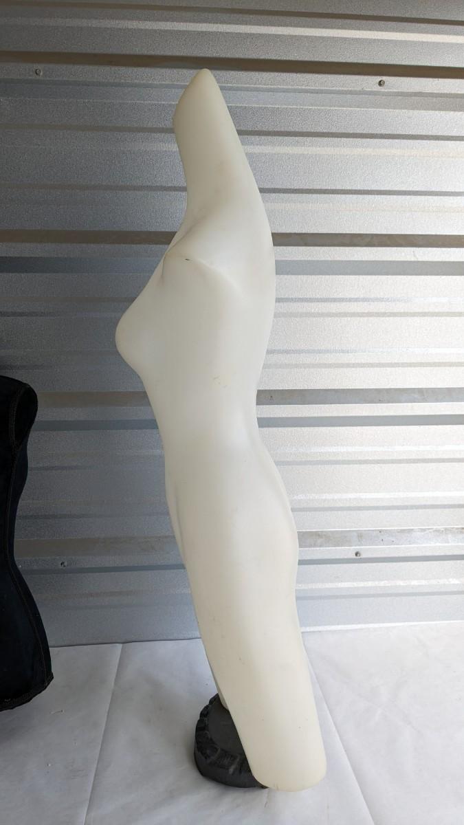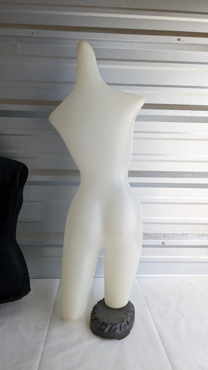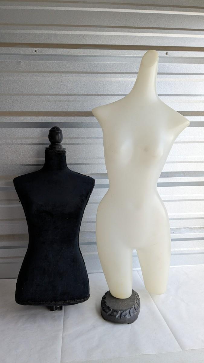 2ea, one a lovely lightweight cardboard covered with black velour, no base, 31" tall. The other a vintage plastic form with heavy cast iron base, 42" tall. No shipping. 2616