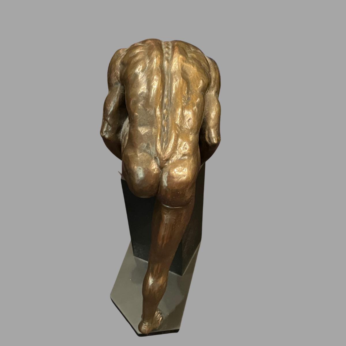 Body Talk Bronze Sculpture Naked Bodybuilder Stretching on a Pedestal - 13