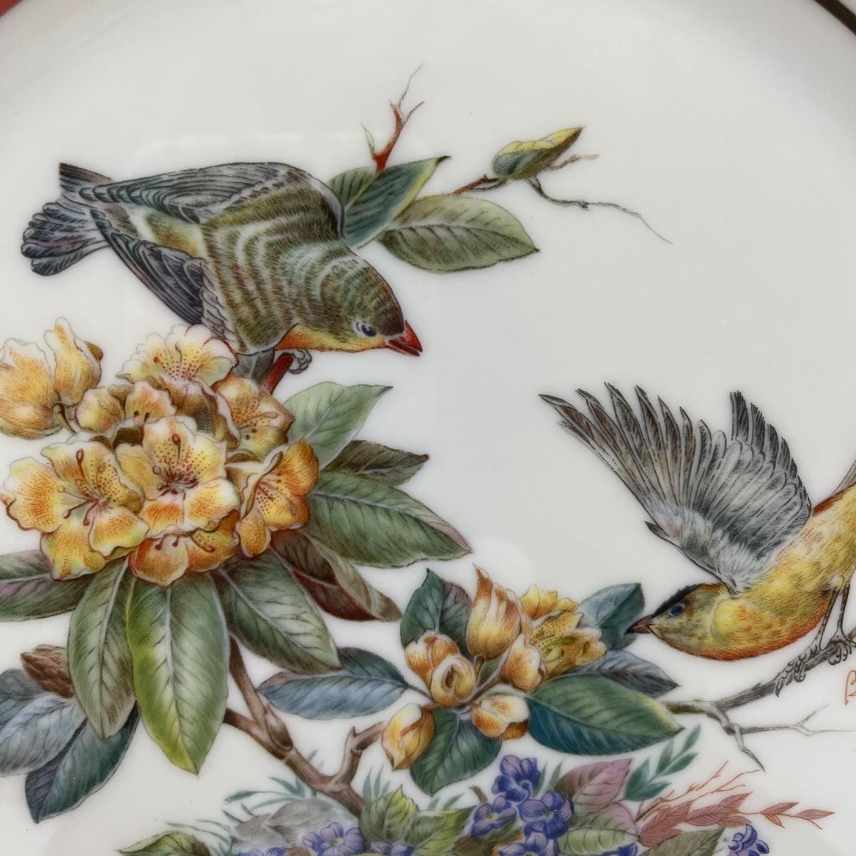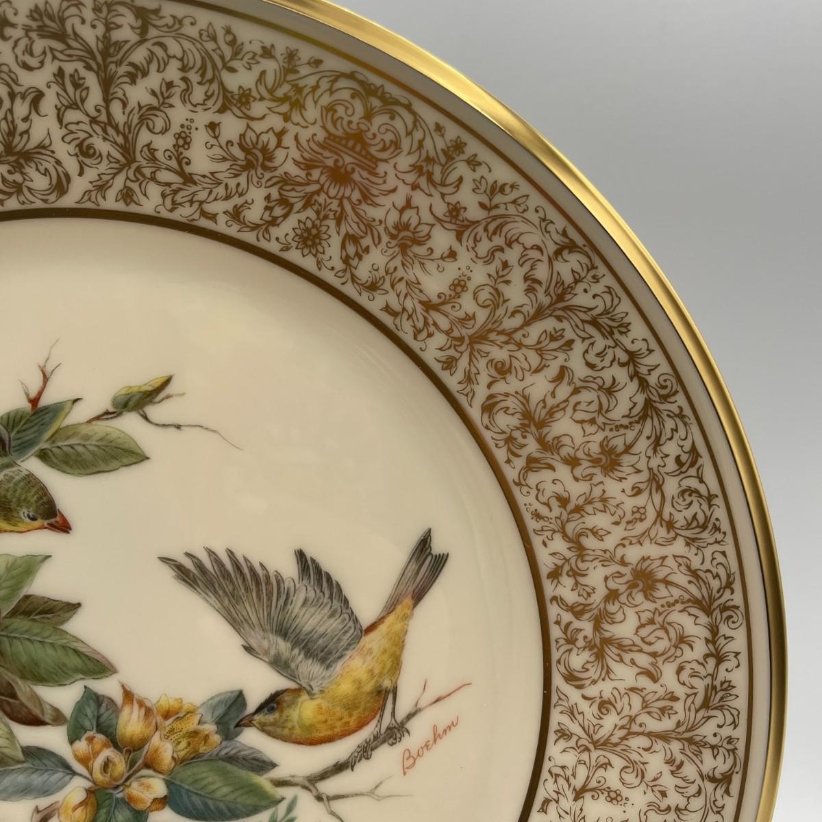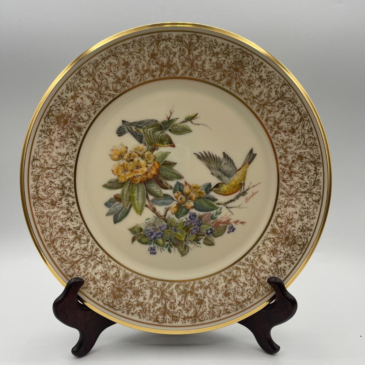 If you are a bird lover, Lenox collector, or fan of the art of Edward Marshall Boehm, you may need these plates to feather your nest. We have nine for you to choose from. These are fine, elegant pieces, hand painted after Boehm's work. Lovely gilded, lacy border. Pictured is the Goldfinch. Can't you just hear them sing? 10" in Diameter with box & papers. # 844