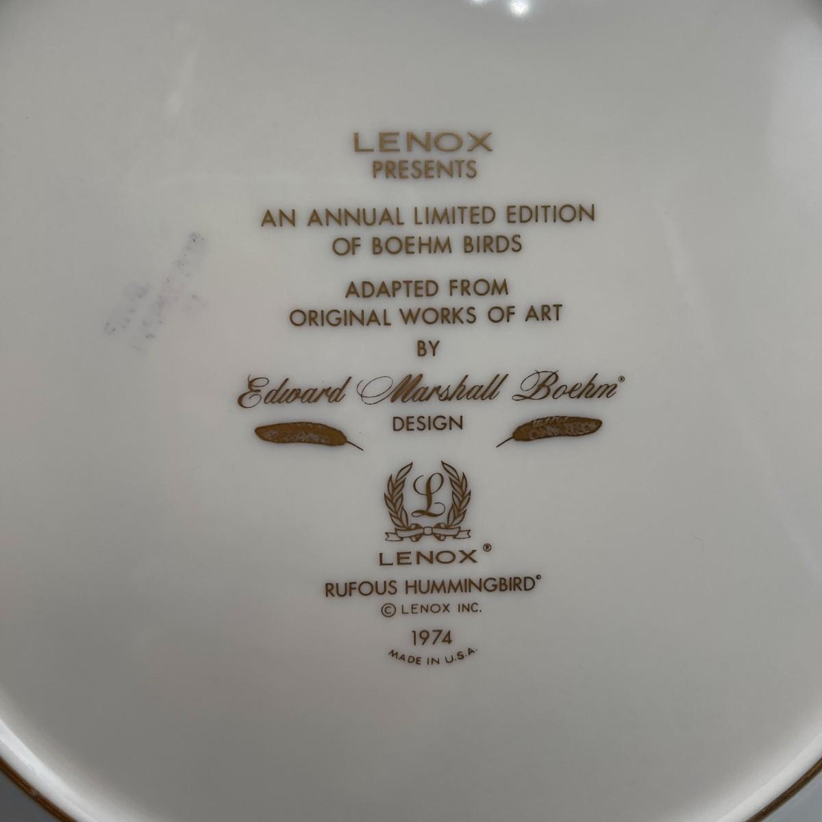Boehm by Lenox Collector Plates: Rufous Hummingbird, 1974