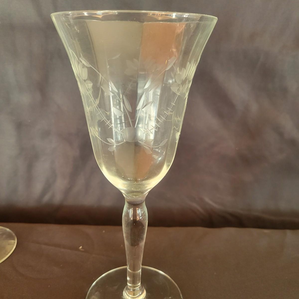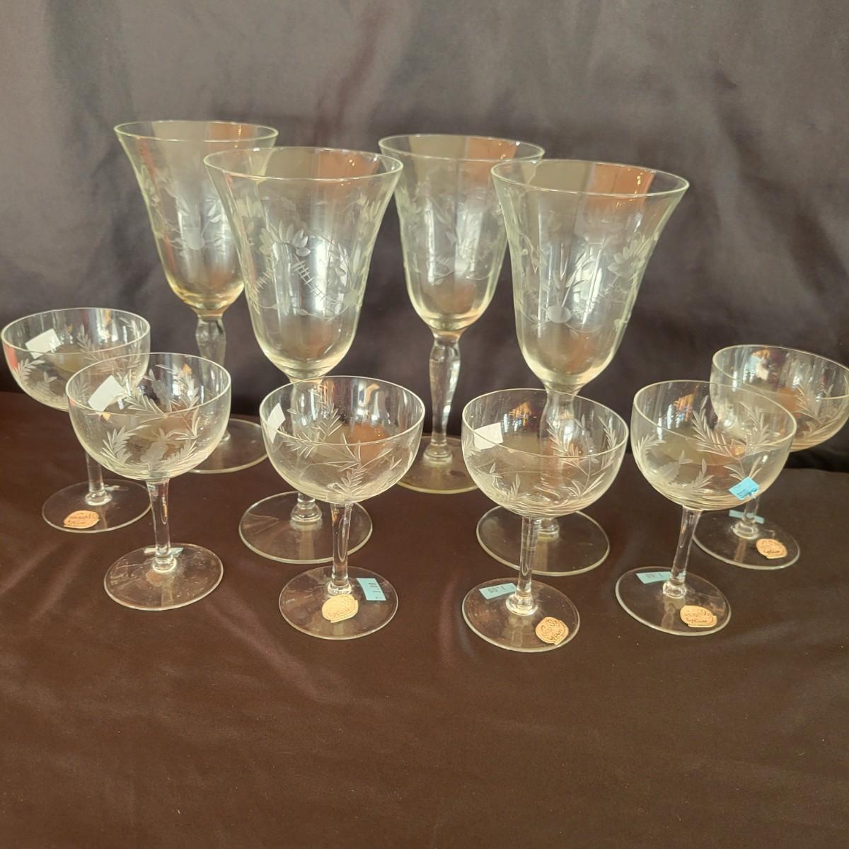 An assortment of ten etched Glasses in good condition with no chips. Included are four etched wine glasses that are 8" tall. Also included are six etched cocktail glasses manufactured by Bohemia glass that are approximately 4.5" tall. Shipping available. Shipping can be costly. We suggest calling our local UPS with dimensions and getting an estimate before bidding: (828) 252-6930
