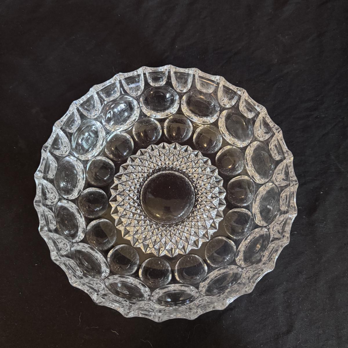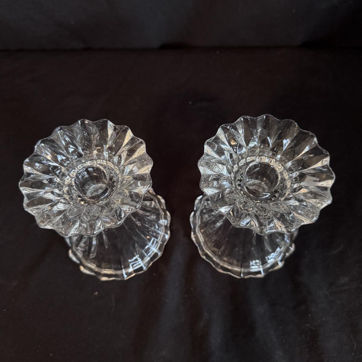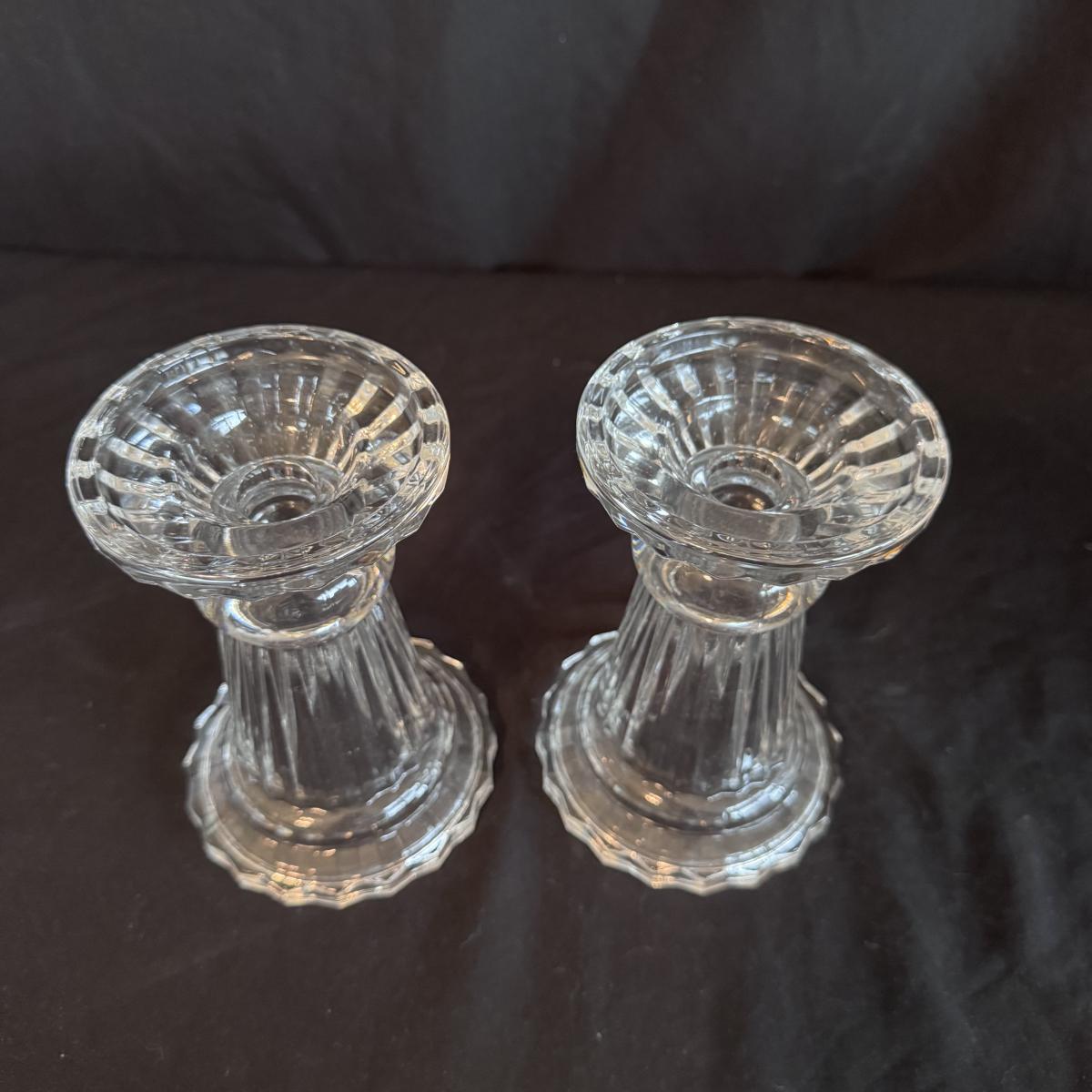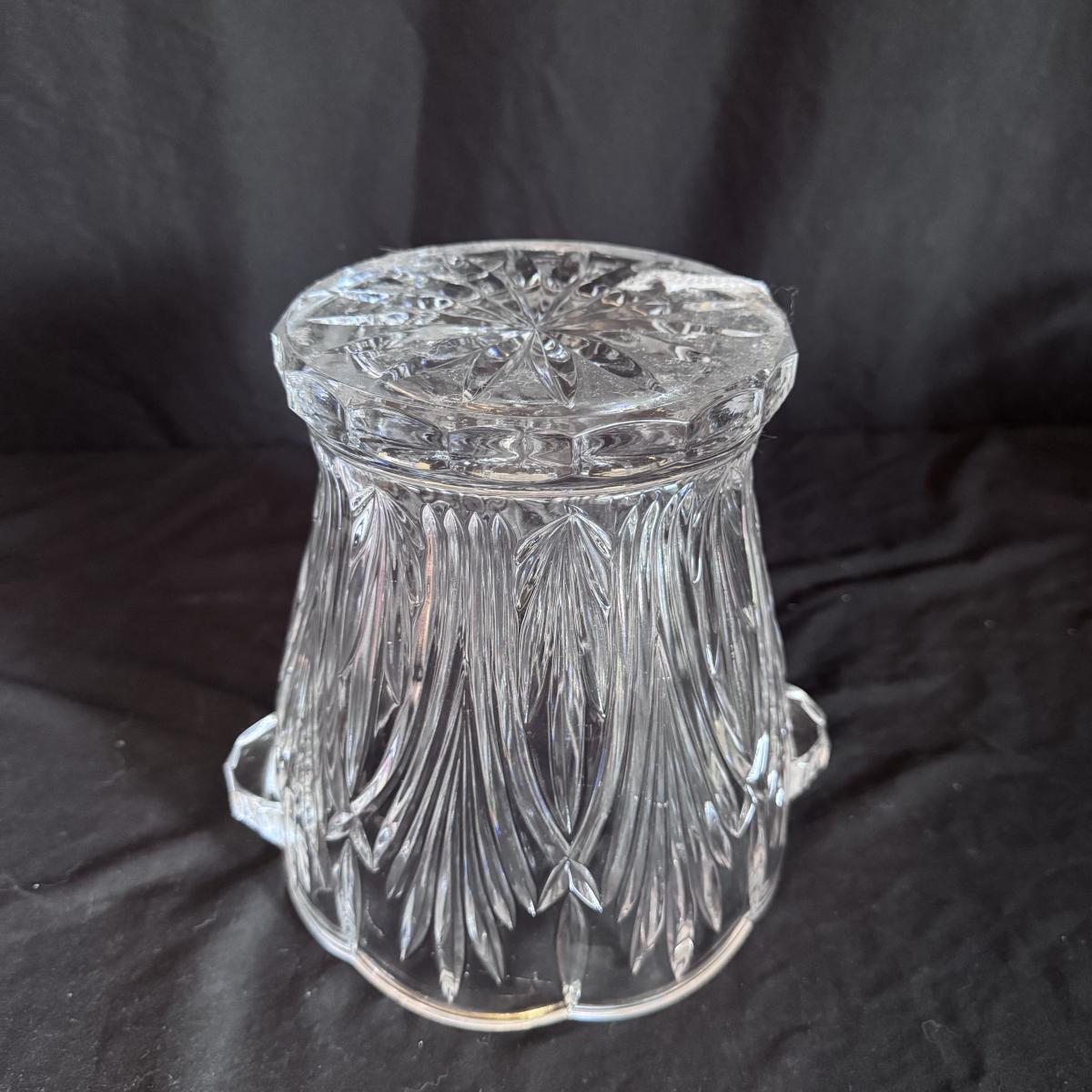 This lot includes four Bohemia crystal barbell candle holders, one Bohemia crystal candy bowl, and one Bohemia crystal ice bucket. Also included are two Studio Nova crystal bud vases, two unmarked crystal bowls, and two unmarked crystal barbell candleholders. The largest bowl measures 11.5”D x 7”H. Shipping available.
