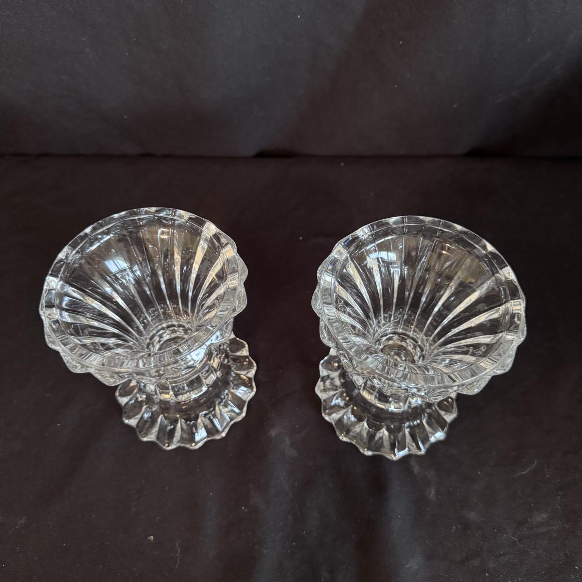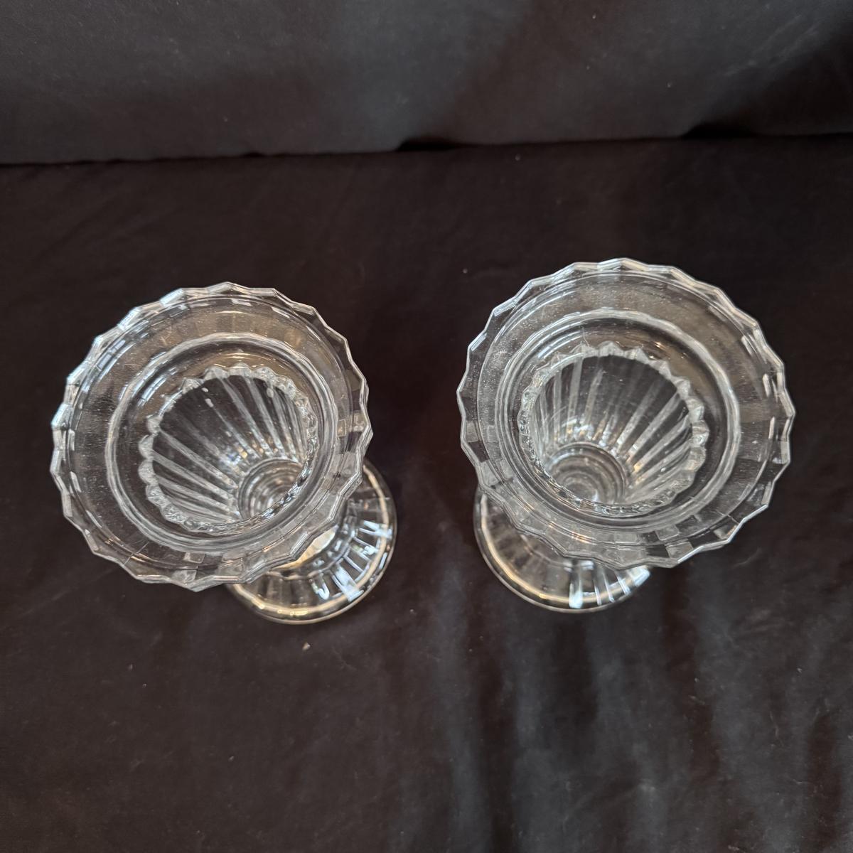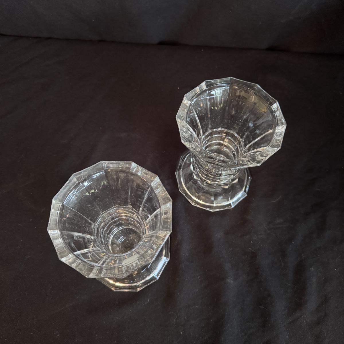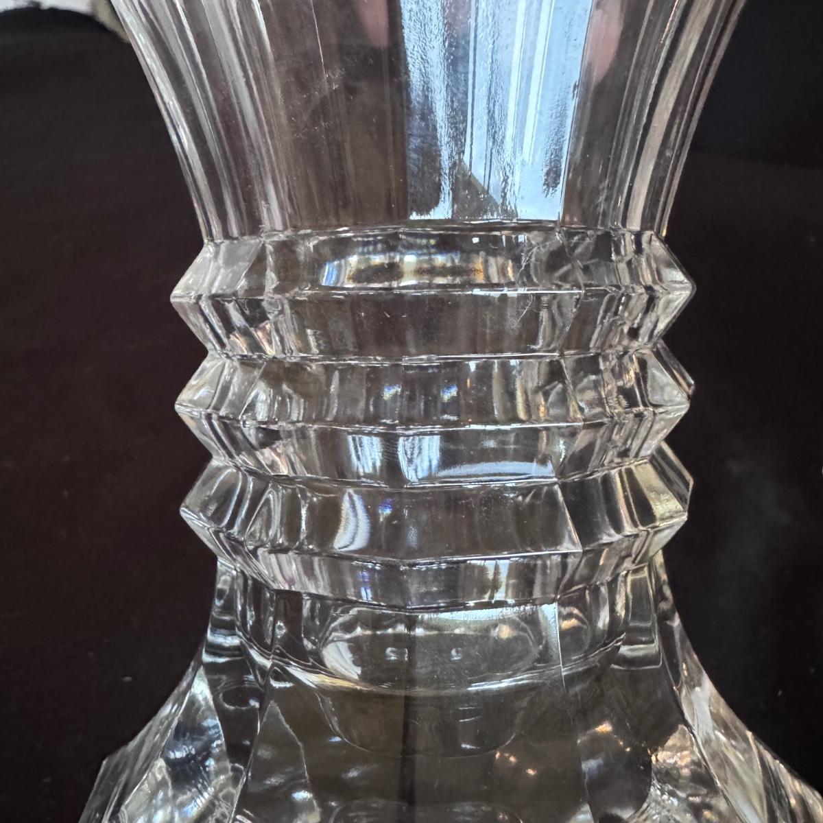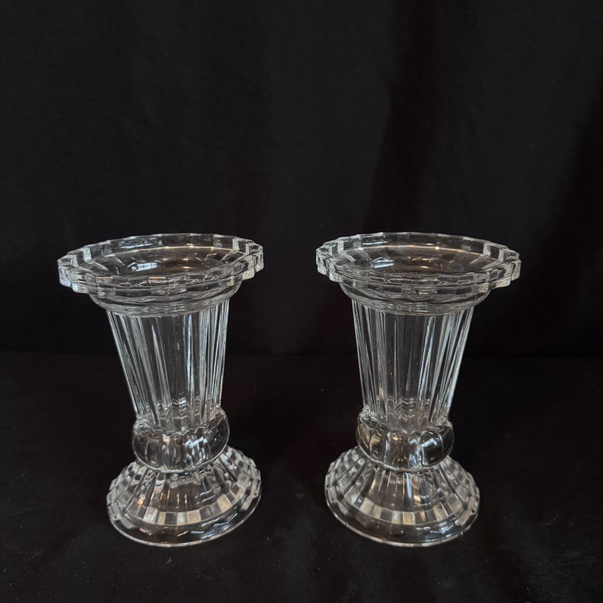 This lot includes four Bohemia crystal barbell candle holders, one Bohemia crystal candy bowl, and one Bohemia crystal ice bucket. Also included are two Studio Nova crystal bud vases, two unmarked crystal bowls, and two unmarked crystal barbell candleholders. The largest bowl measures 11.5”D x 7”H. Shipping available.