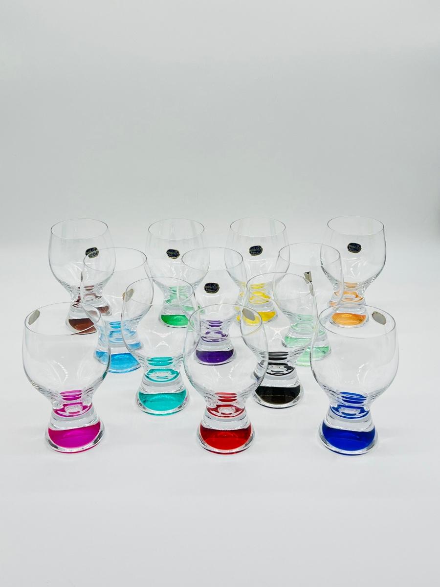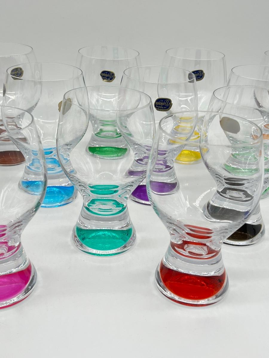 BOHEMIA ~ Two (2) Sets Of 12 Colorful Goblets ~ 12 Different Colors