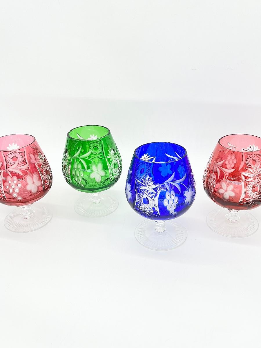 Set Of Four (4) Bohemian Style Cut to Clear Brandy Glasses