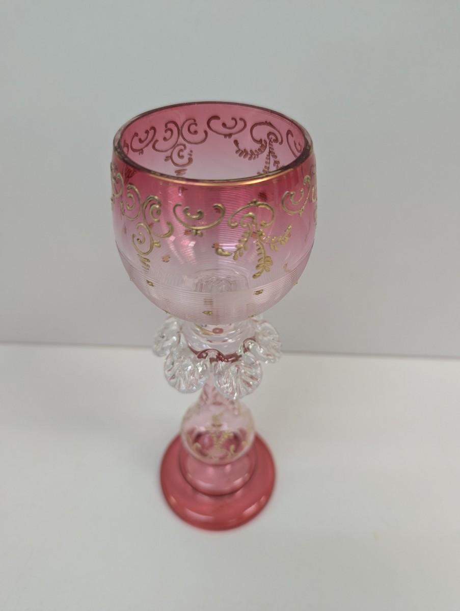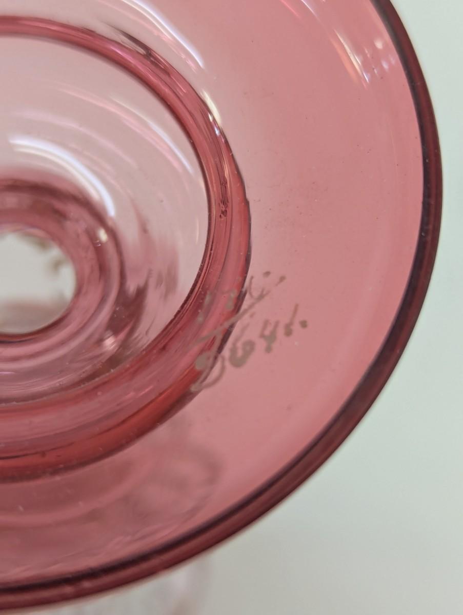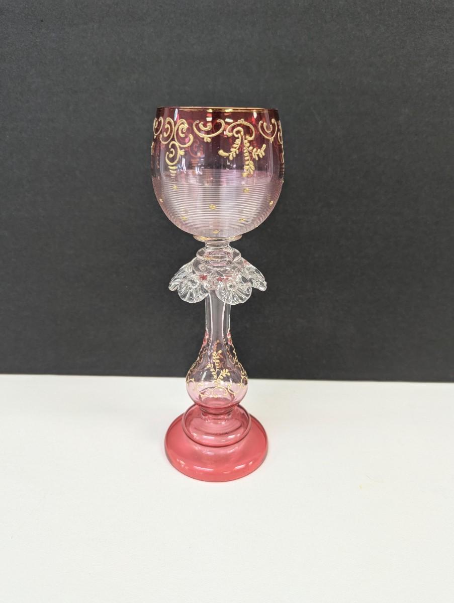 Bohemian Art Glass Cranberry Wine Stem Signed