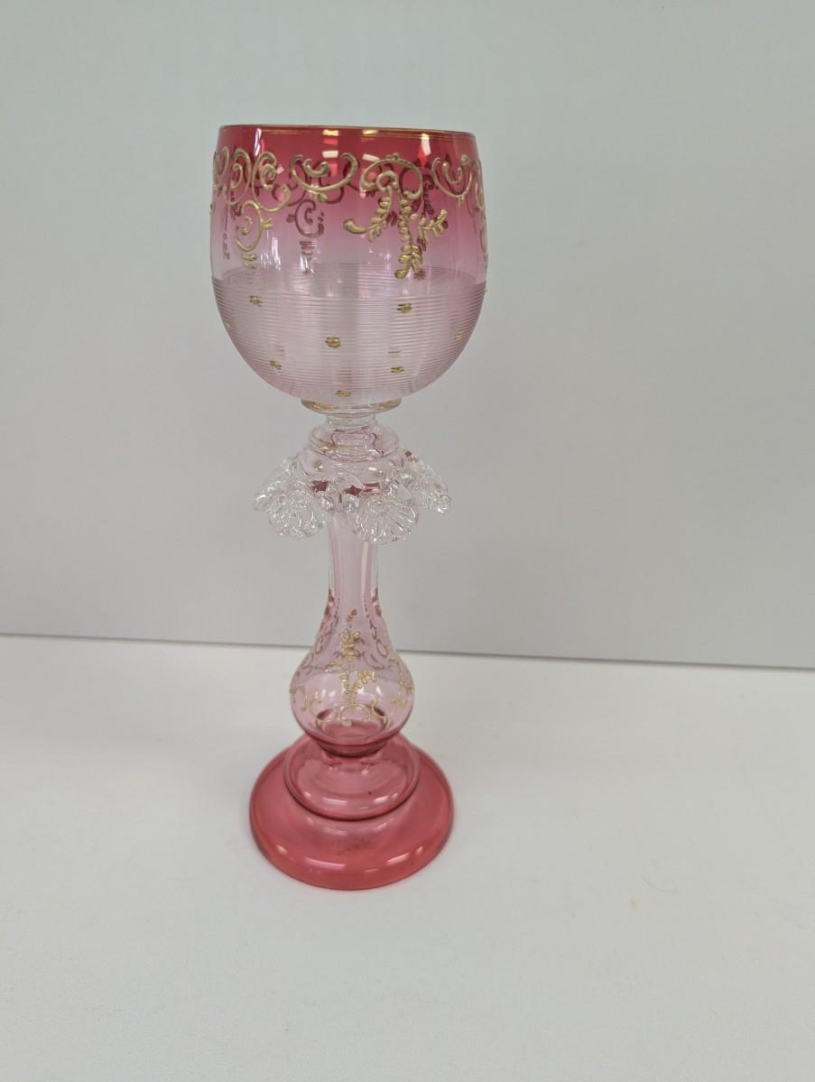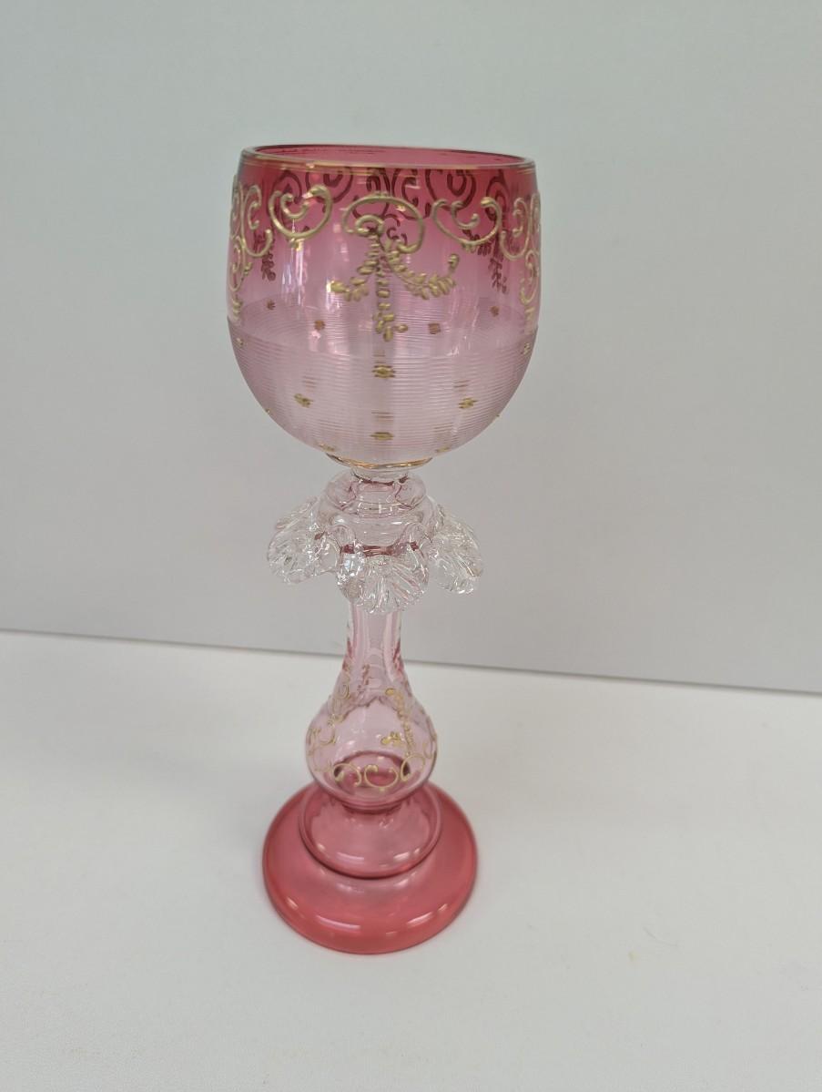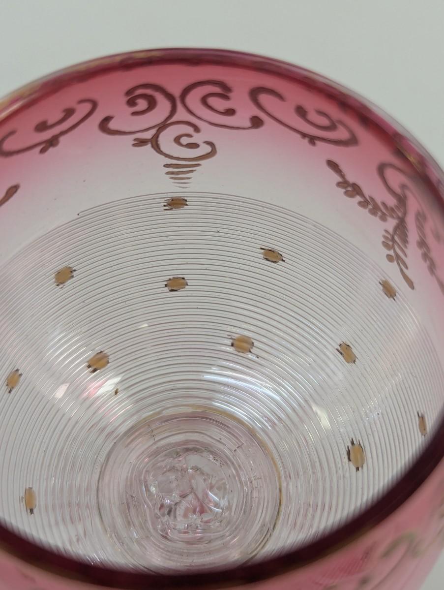Bohemian Art Glass Cranberry Wine Stem Signed