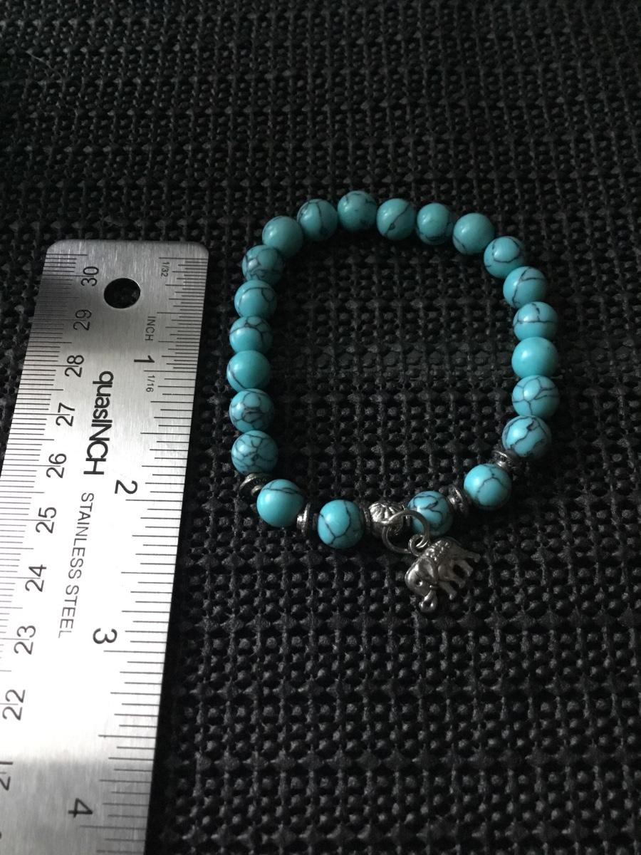 Bohemian blue turquoise beaded stretch bracelet with elephant charm