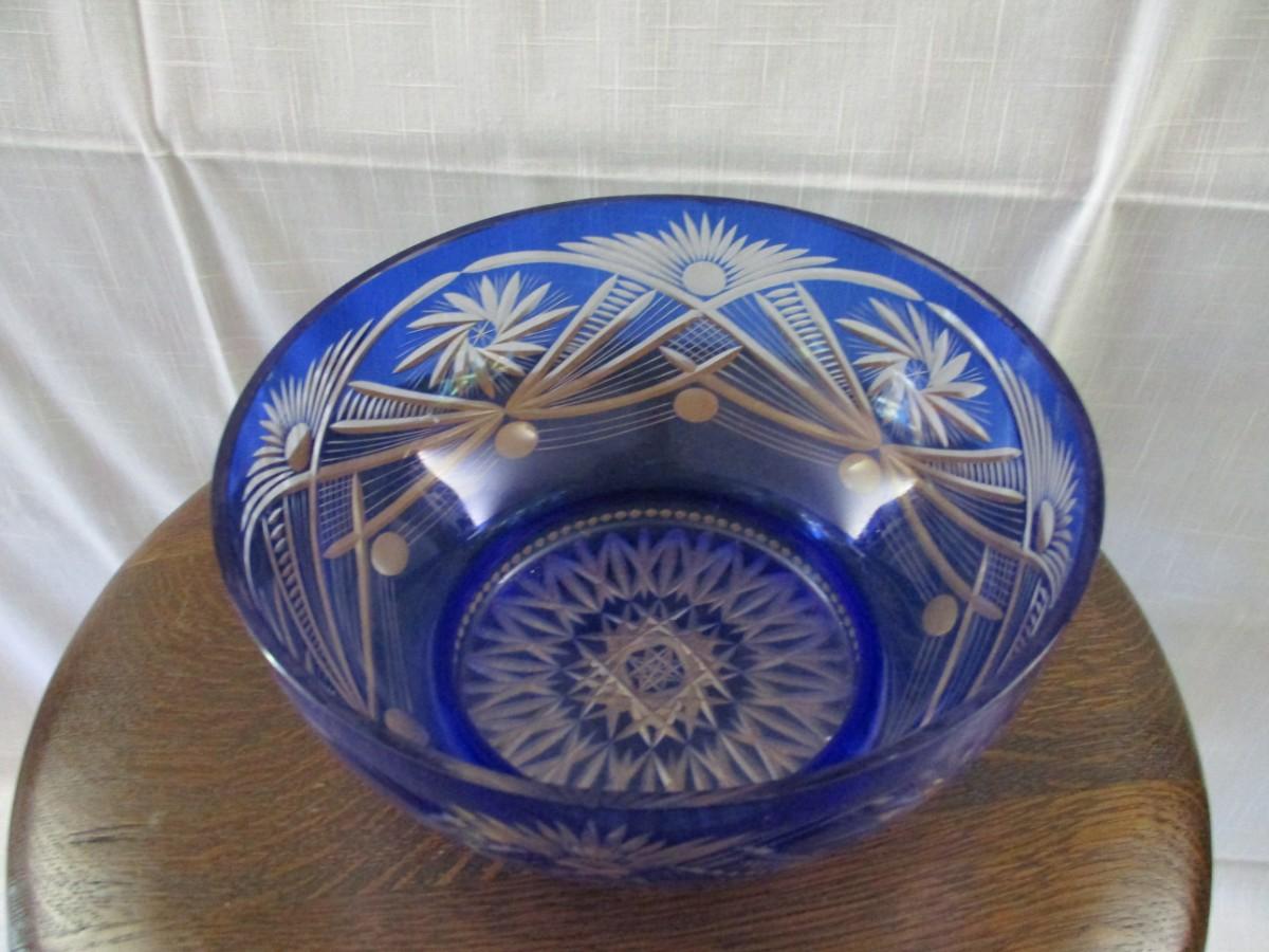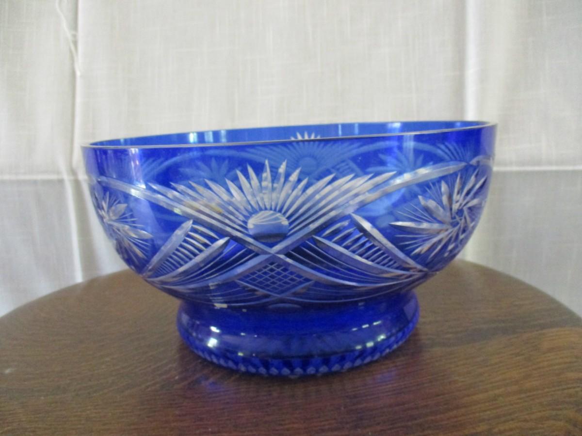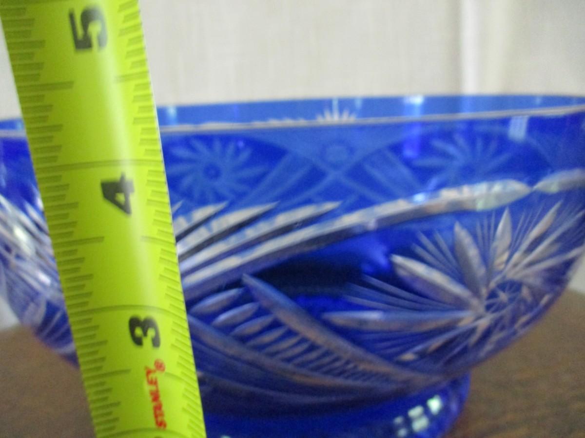 Bohemian Chezh Cobalt Blue Glass Cut Bowl