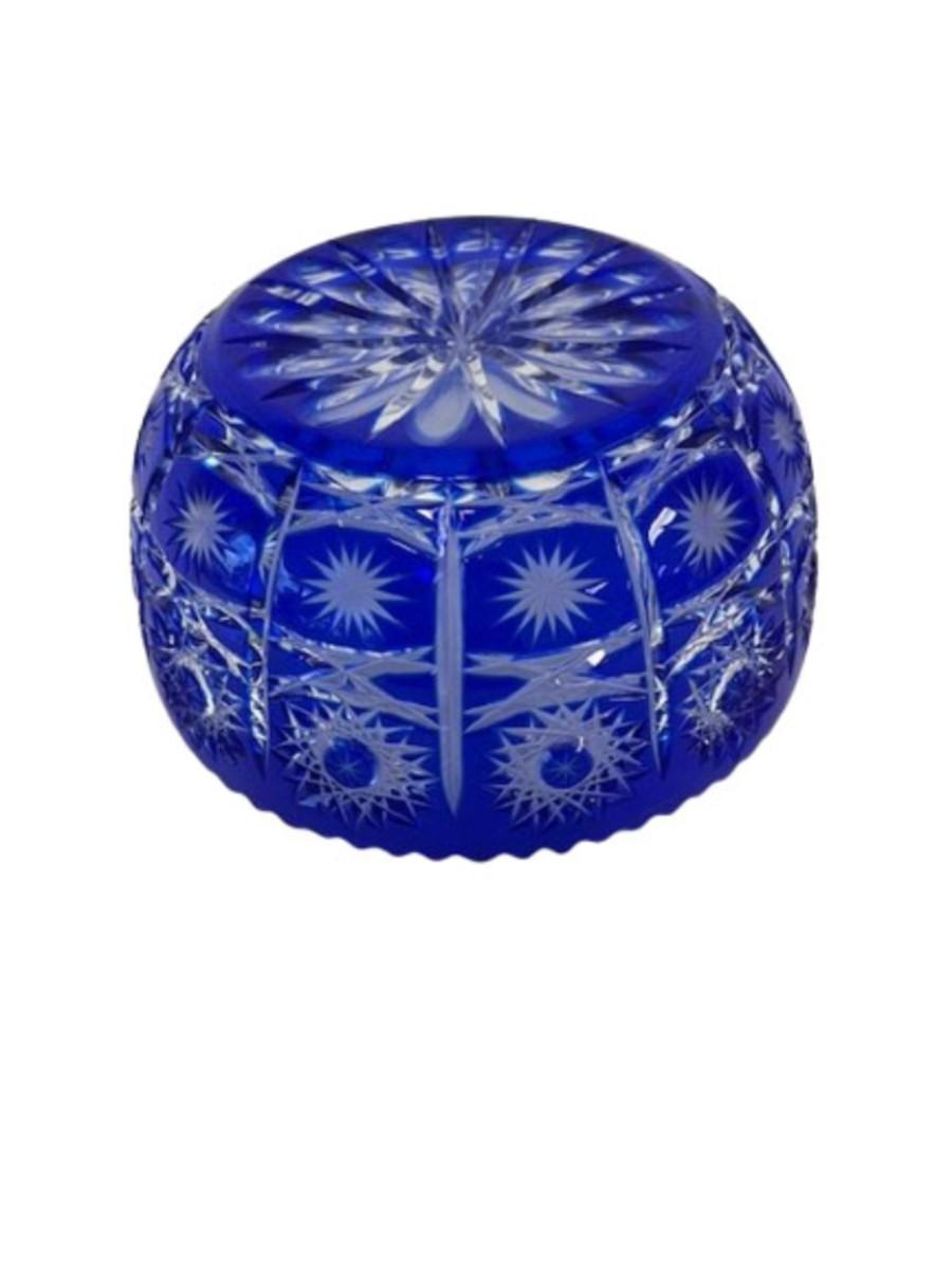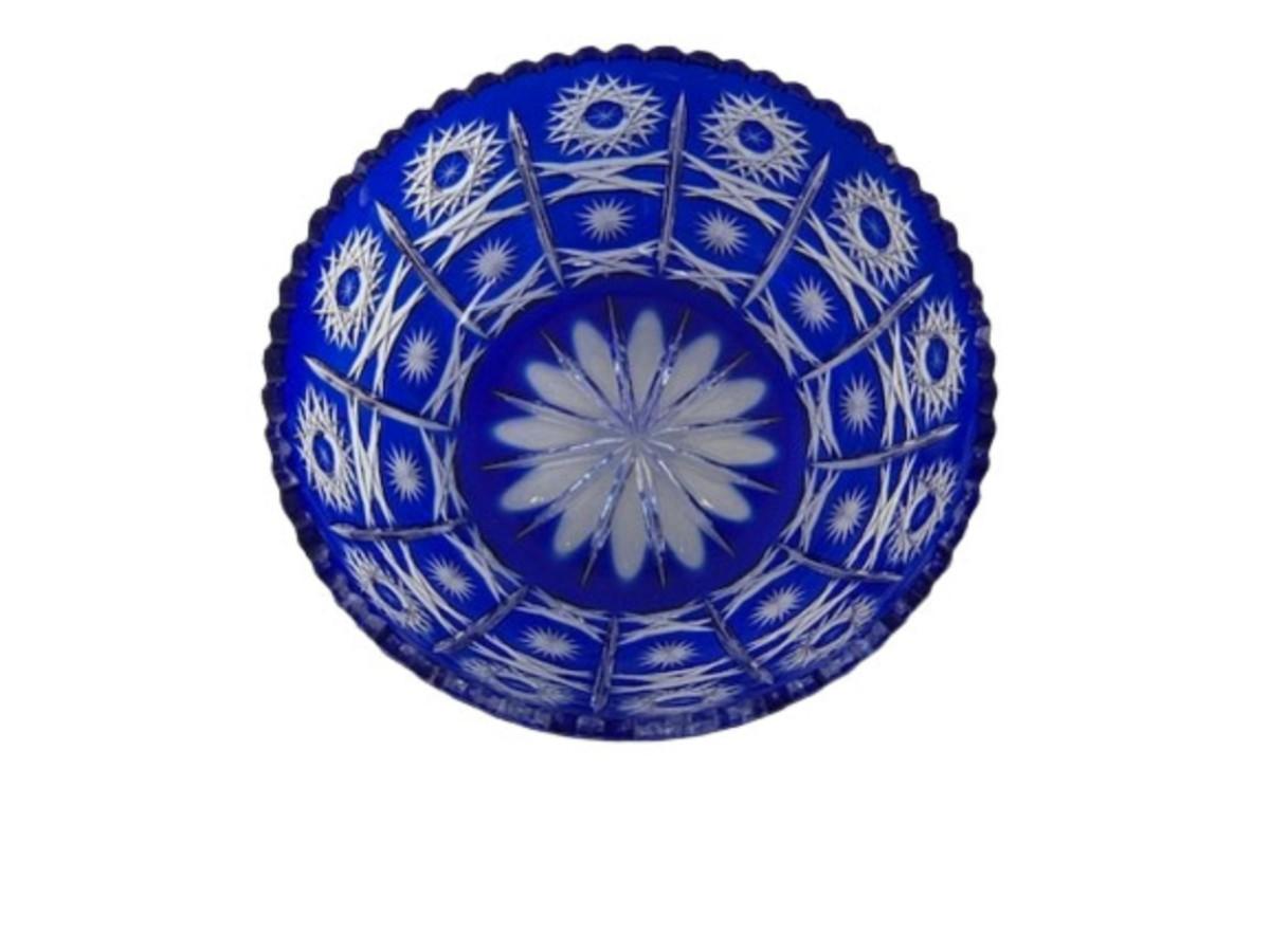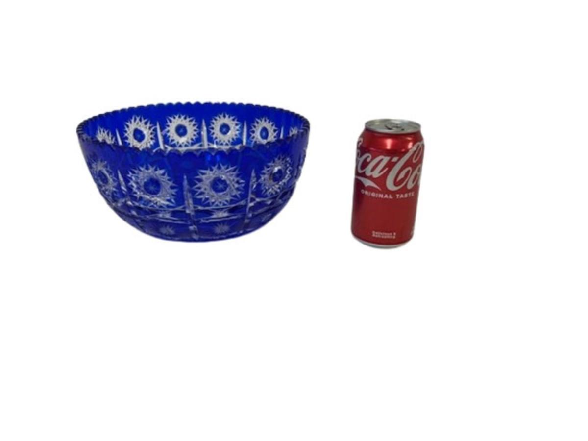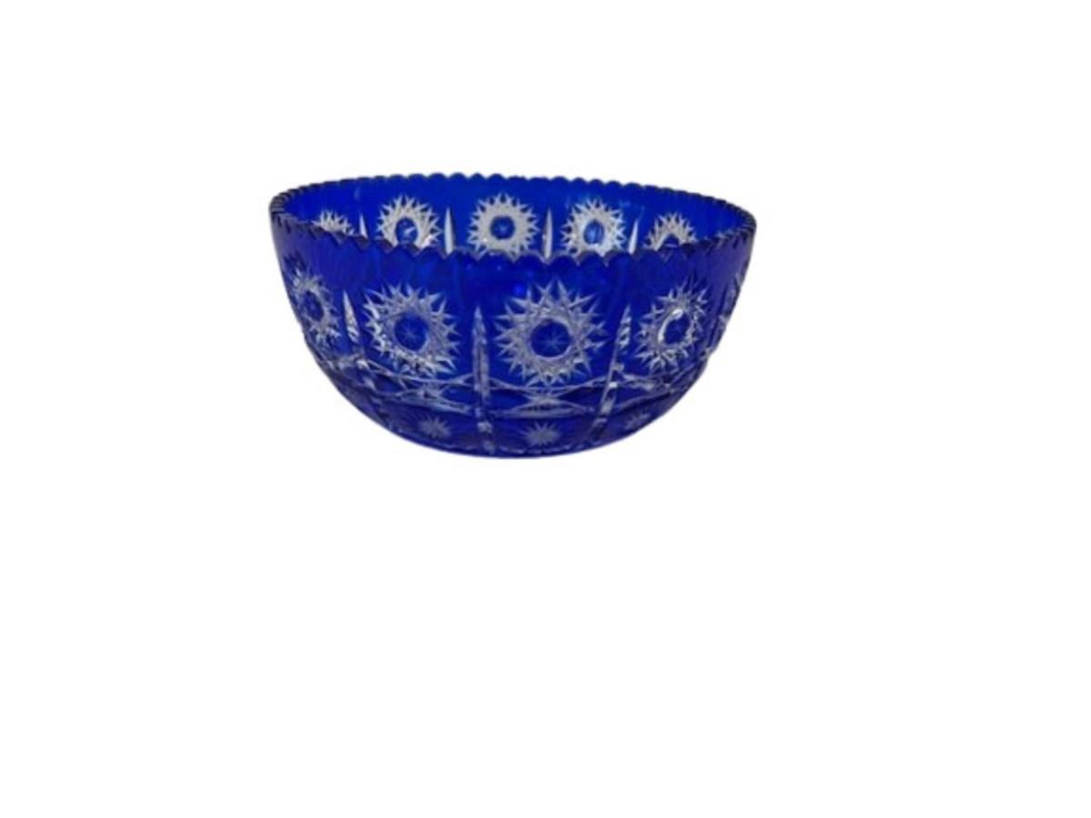 Bohemian Cobalt Cut to Clear Crystal Centerpiece Bowl