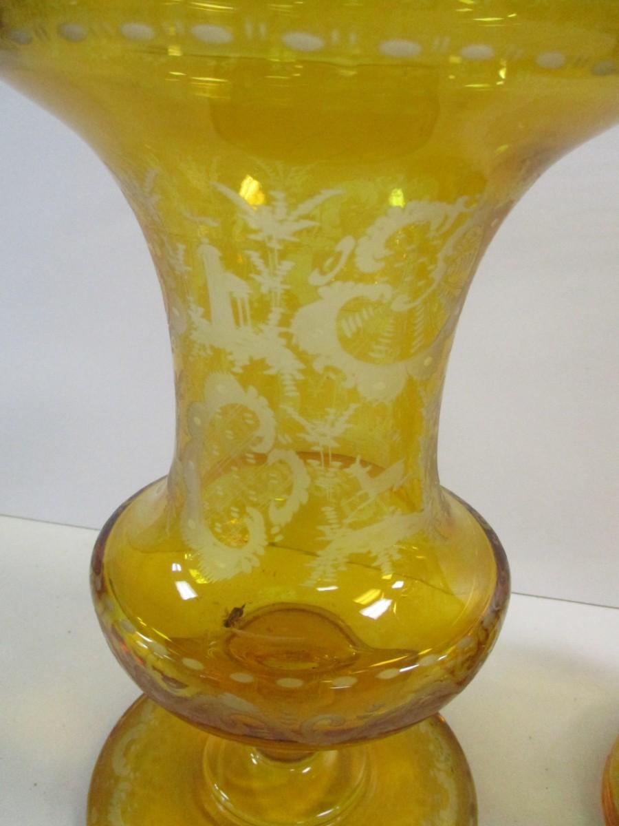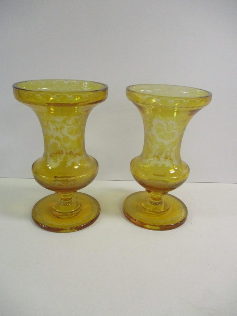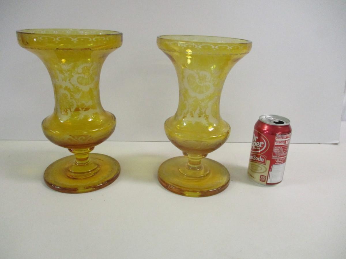 Bohemian Crystal Vase Amber To Clear Cut Etched