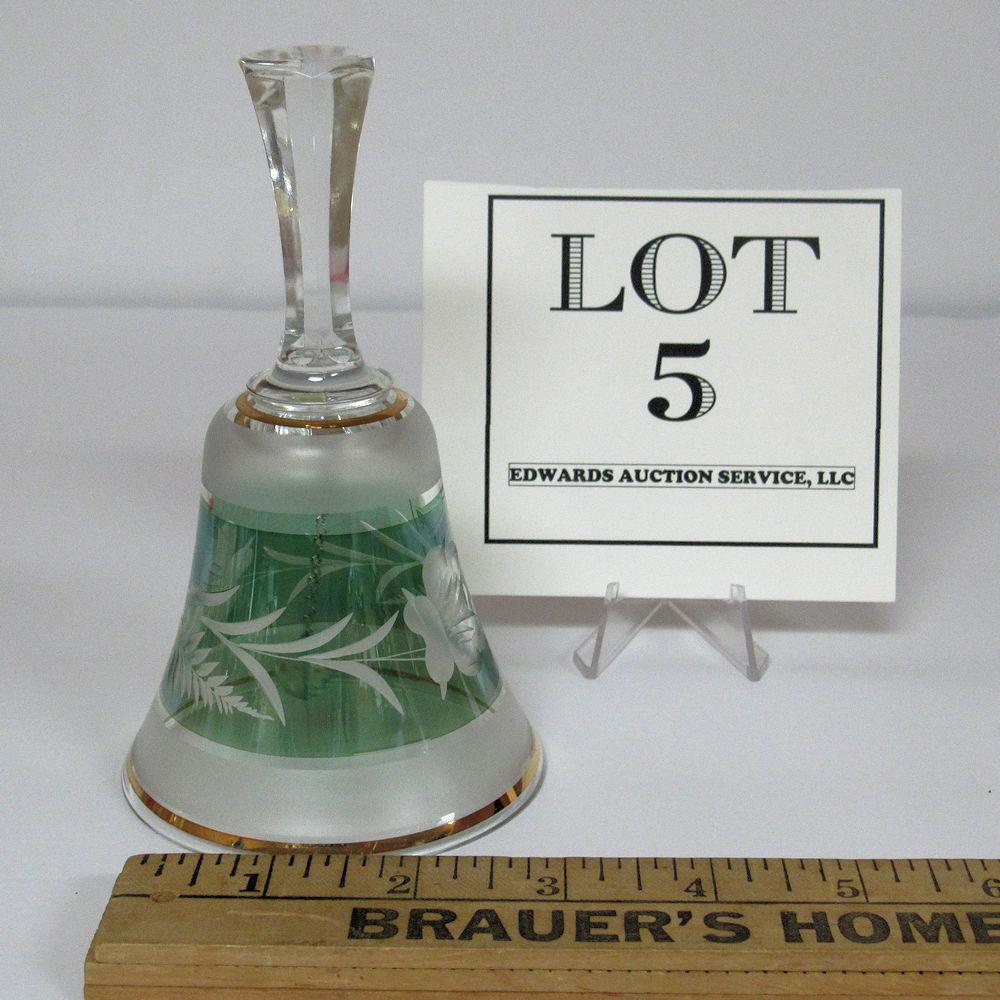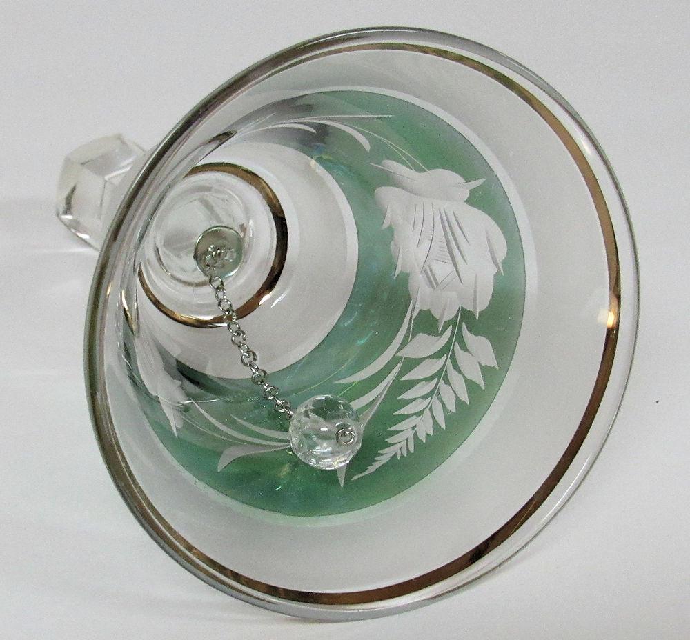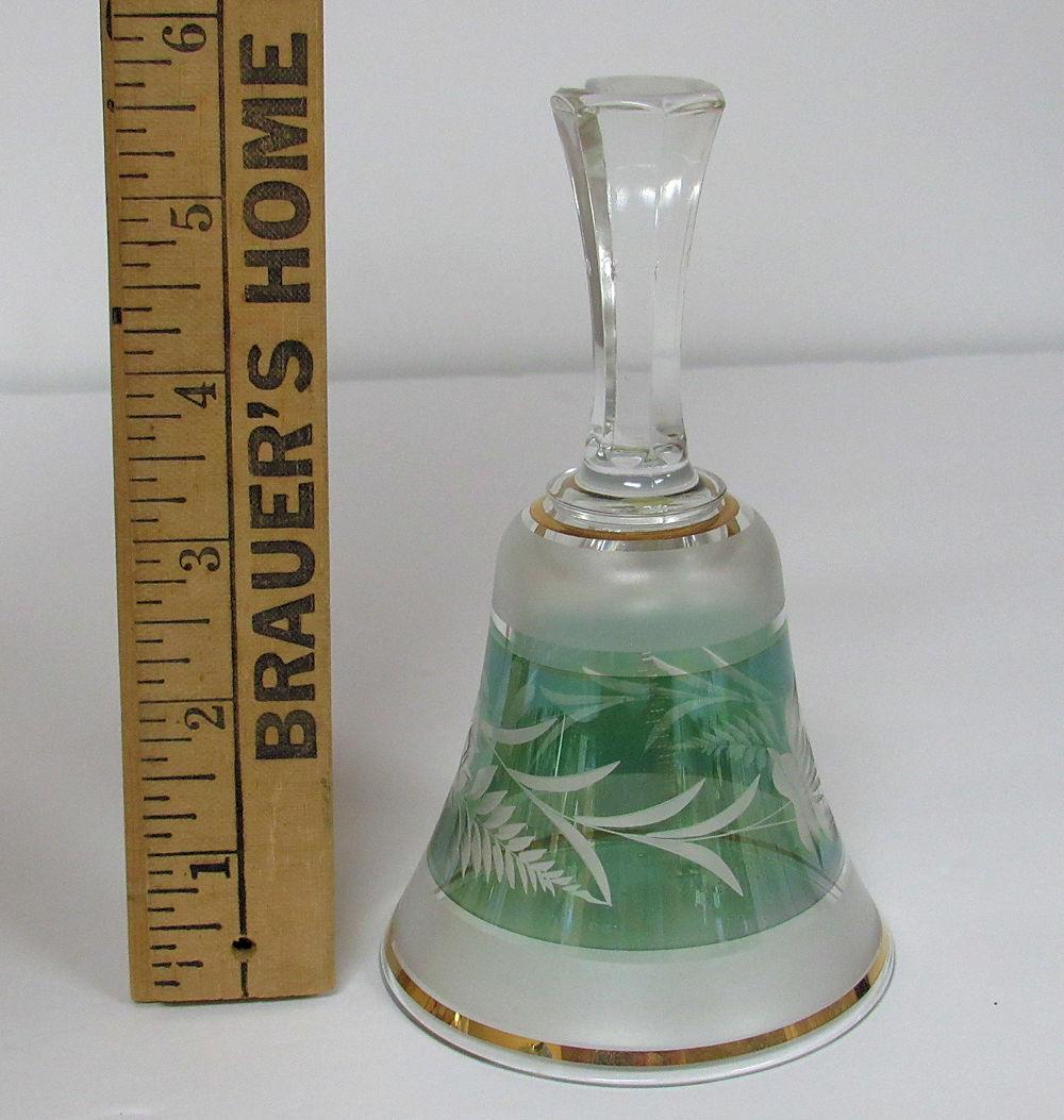 Vintage Bohemian Cut to Clear Teal Iridescent Glass Bell, Roses Pattern, Satin Finish, No Label, Read descripton
