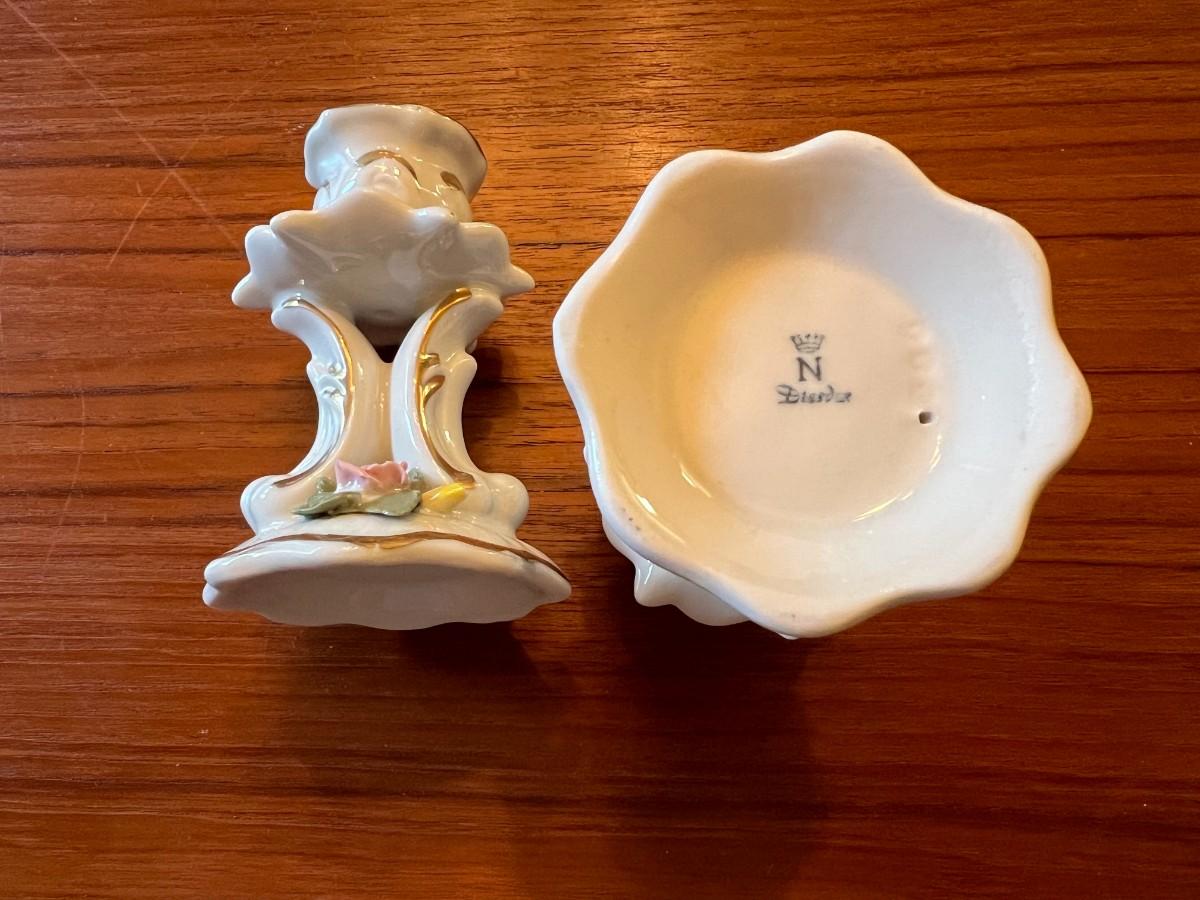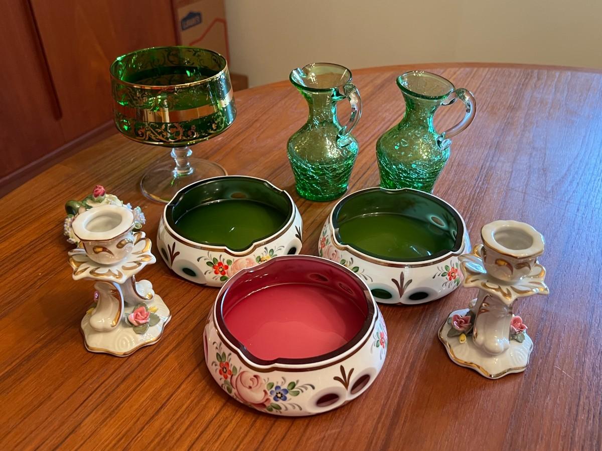 Bohemian Czech Cased Glass Ashtrays and Dresden Porcelain Candleholders Lot