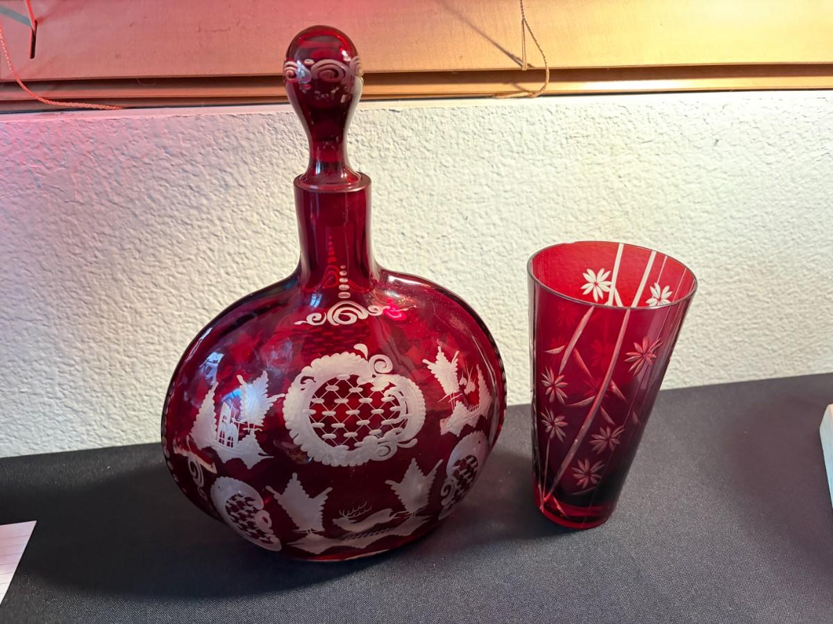 Bohemian Czech decanter and glass