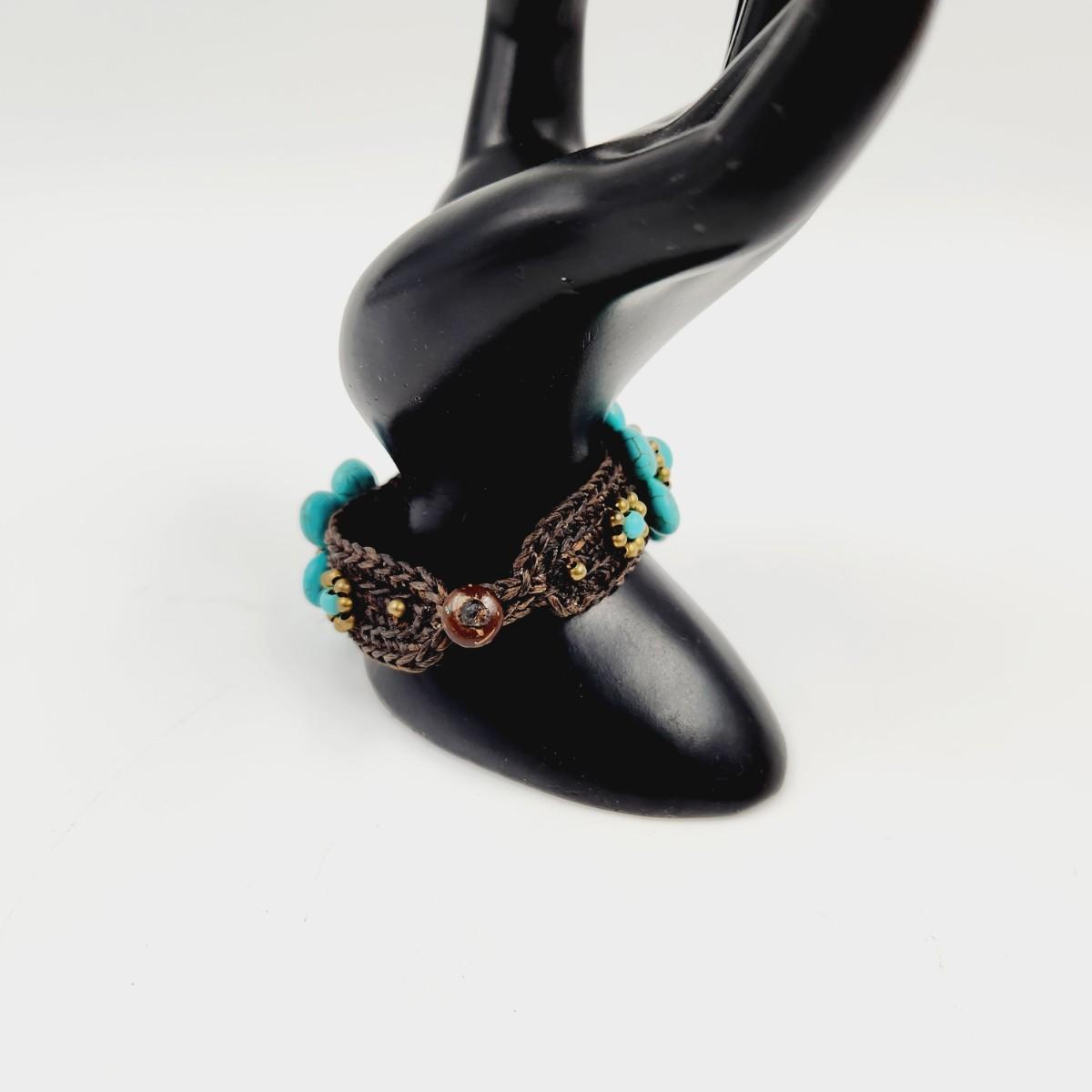 BOHEMIAN FLORAL COTTON ROPE BRAIDED FAUX TURQUOISE STONE BRACELET