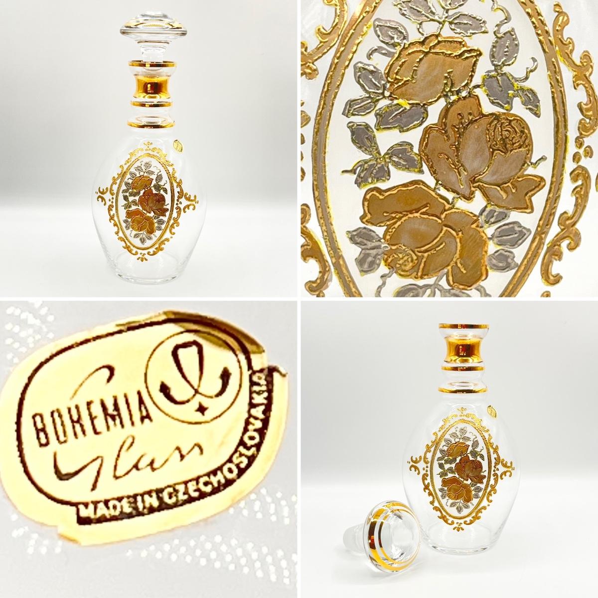 BOHEMIAN GLASS ~ Vtg. Decanter With Cameo Design ~ Set Ot Three (3) Matching Glasses