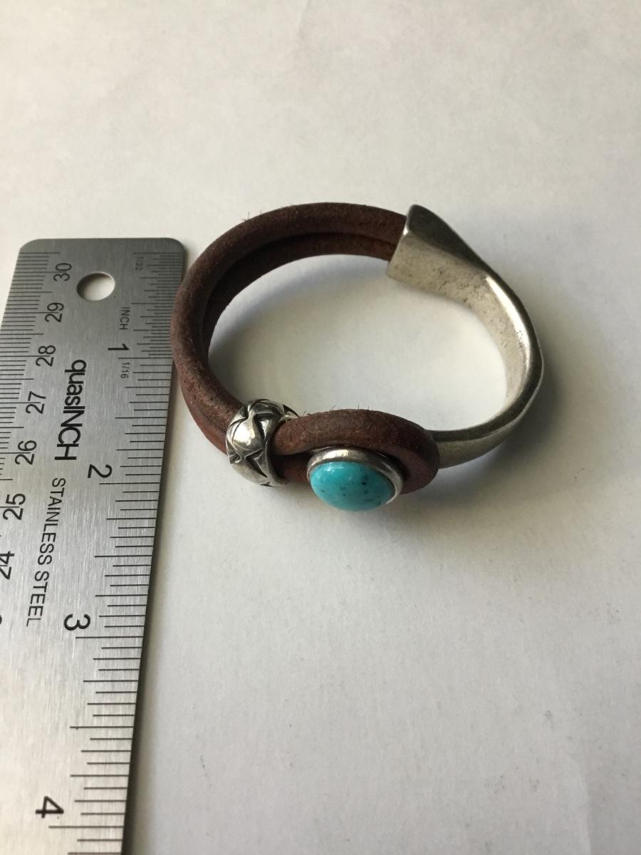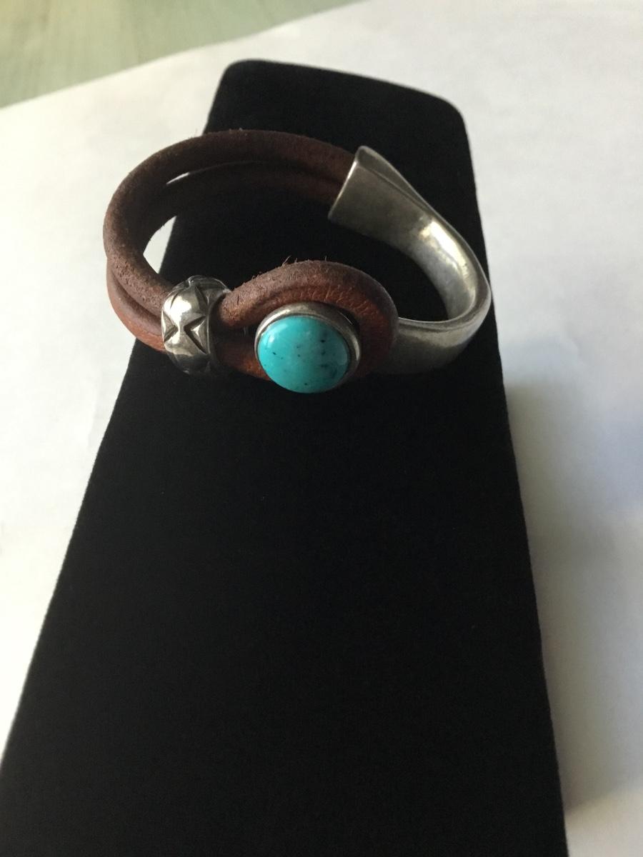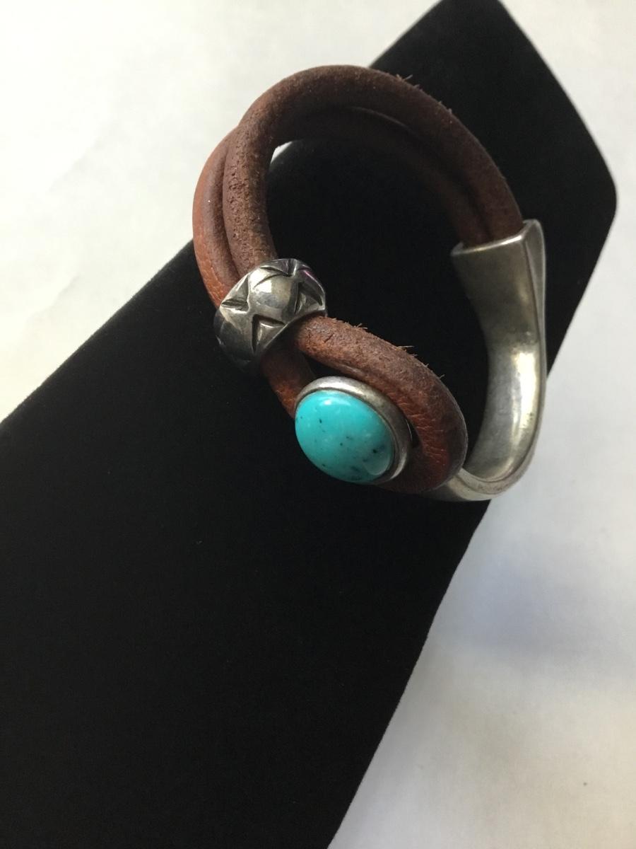 Bohemian leather type silver tone half cuff bracelet with a turquoise cabochon stone type
