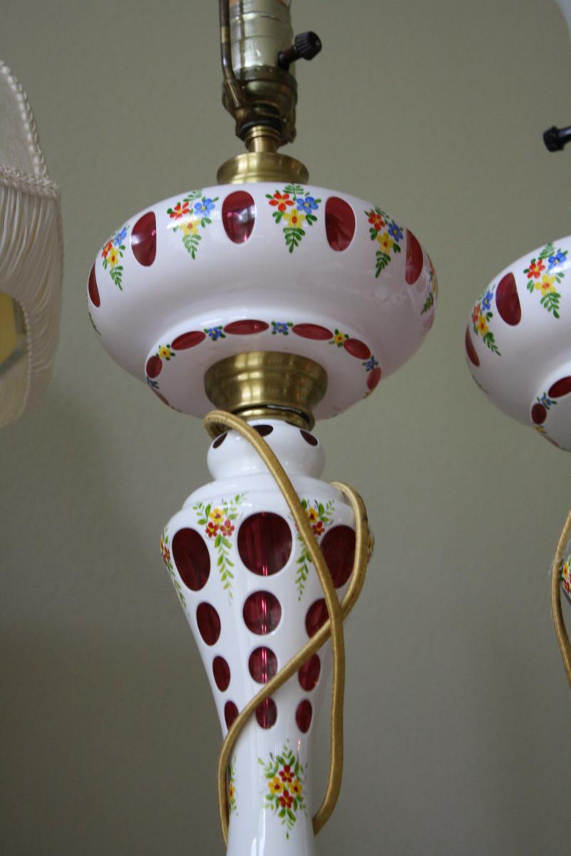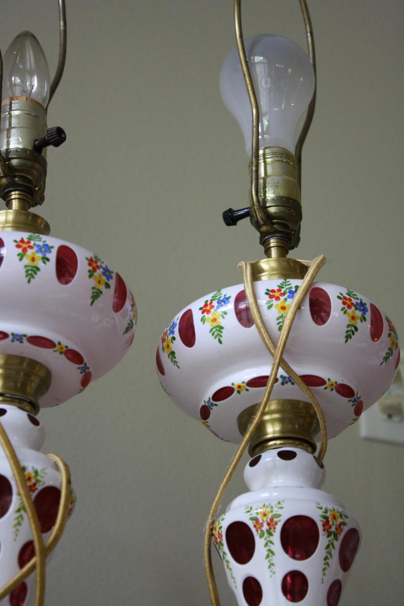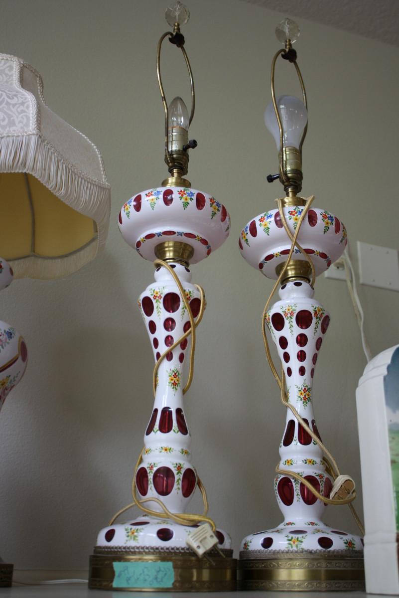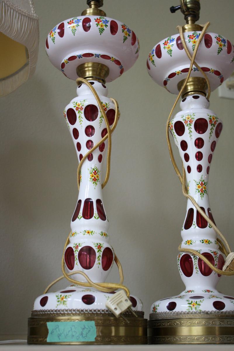 PAIR BEAUTIFUL LAMPS, 23" TO BULBS, CRYSTAL FINIALS