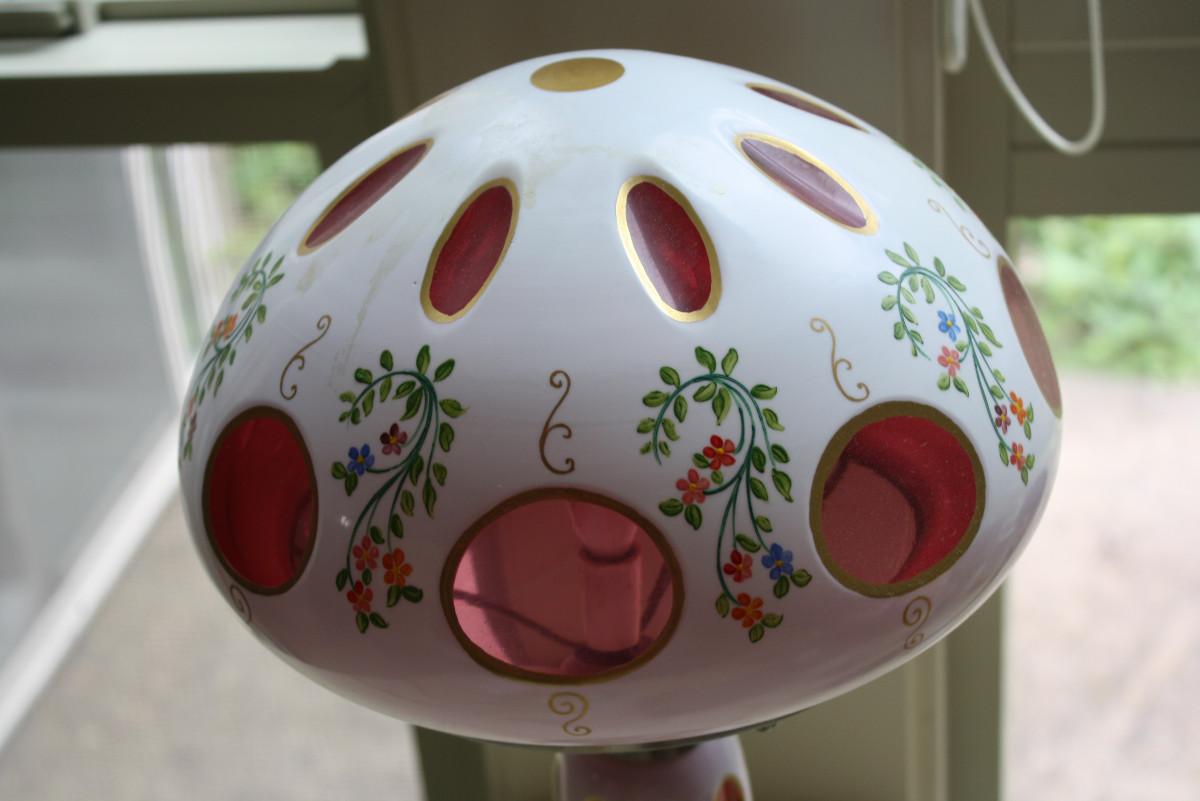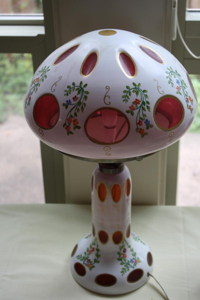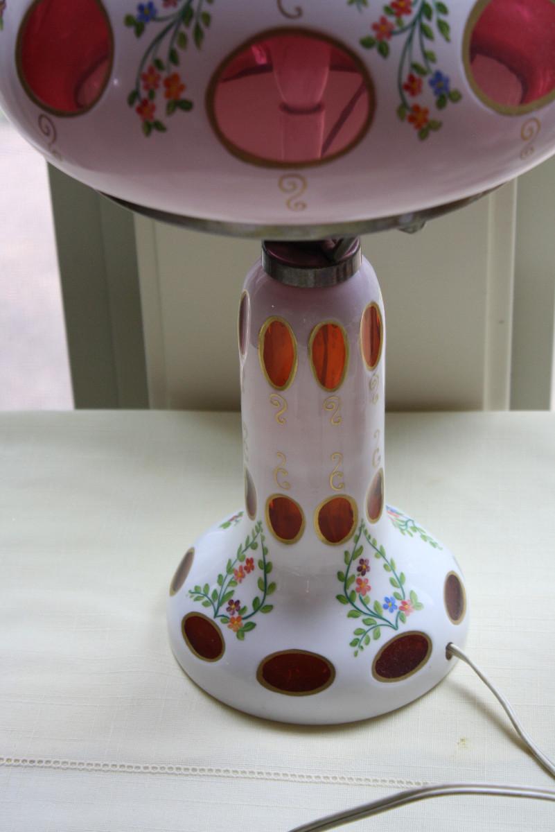 BOHEMIAN OVERLAY CZECH MOSER CUT TO CRANBERRY LAMP 18" (KP/CN)