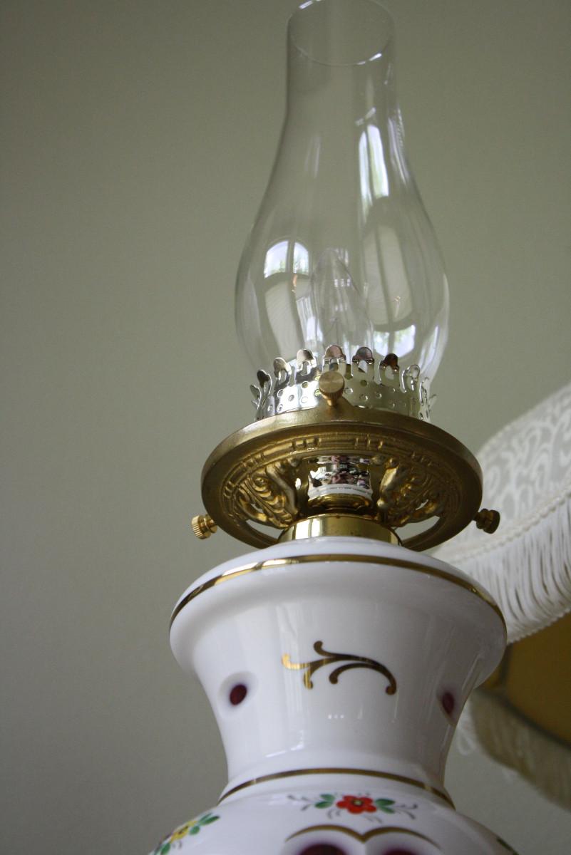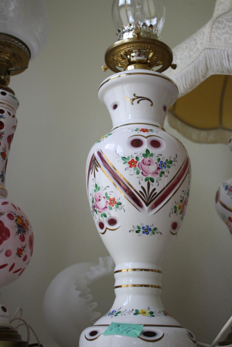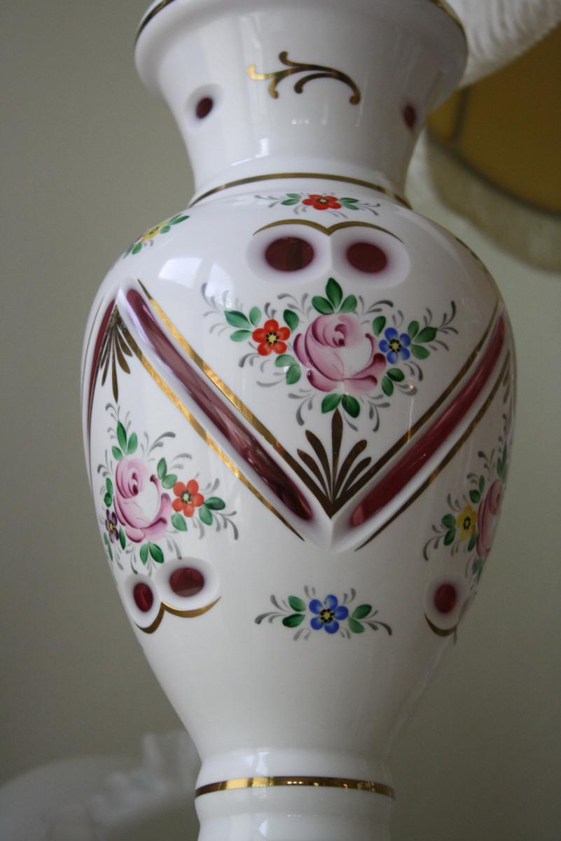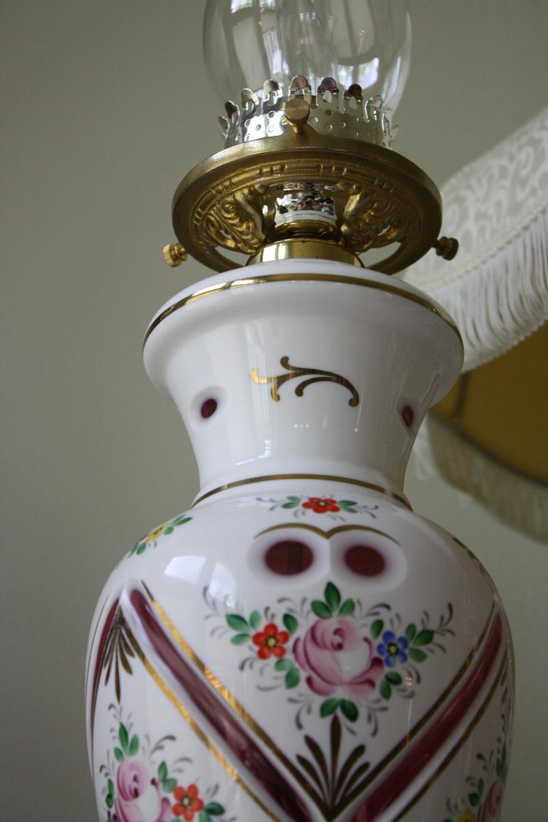 LOVELY CUT TO CRANBERRY GLASS LAMP, 18" TO BOTTOM OF SHADE HOLDER