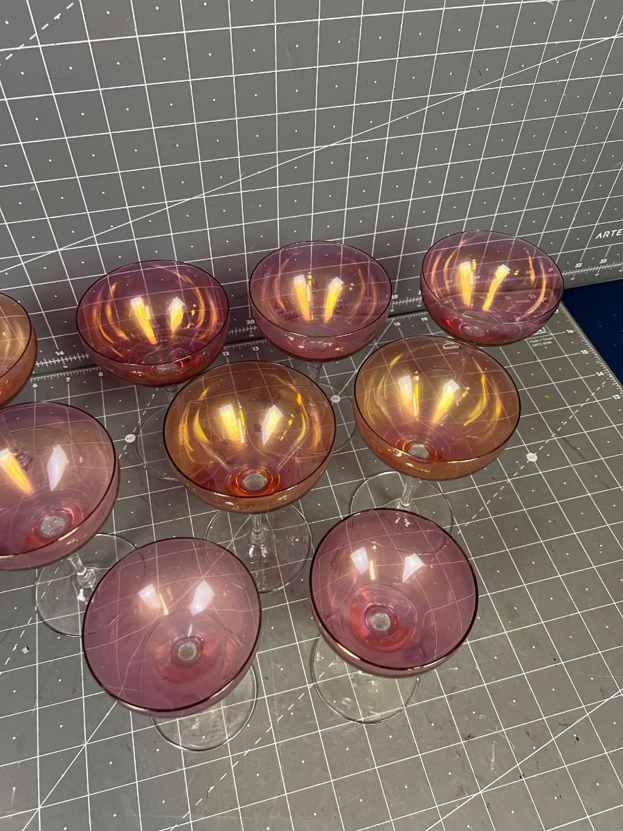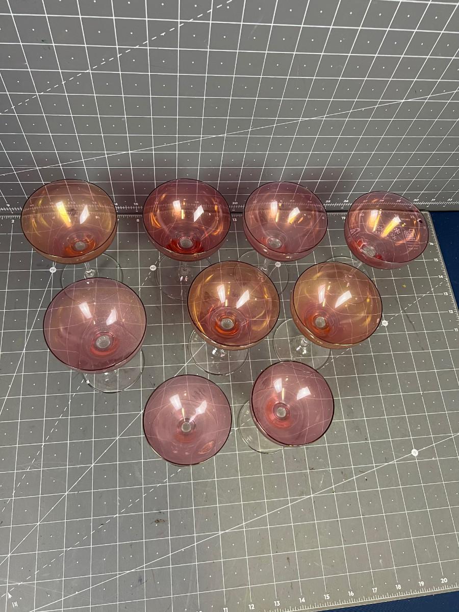 Bohemian  Pink Thin Crystal  (7) at 5-1/2 " and (2) at 5"