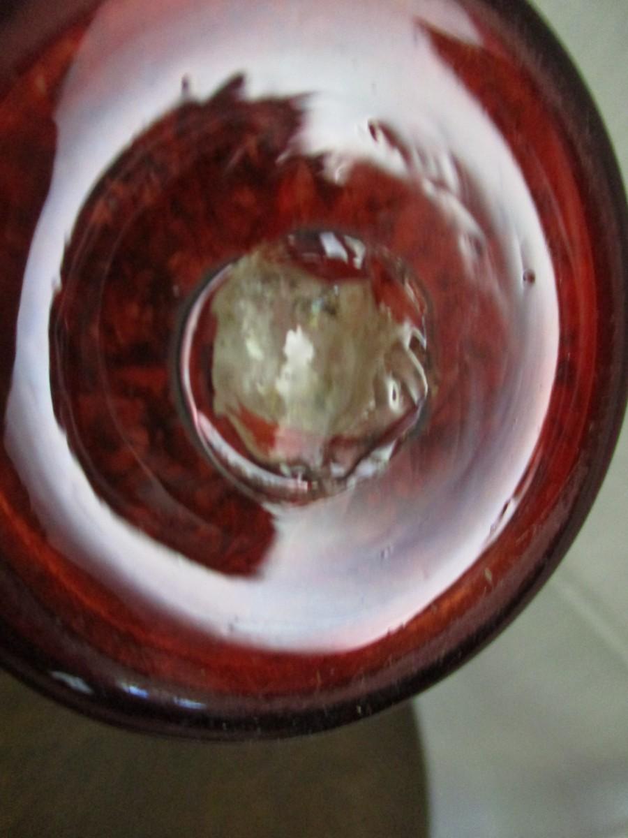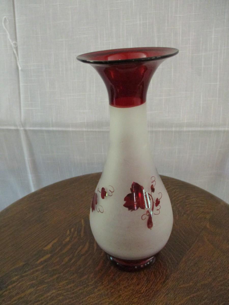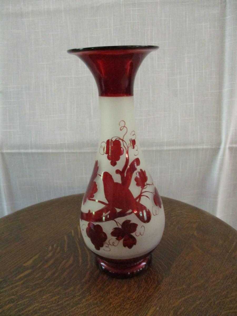 Bohemian Ruby & Frosted Glass Base W/Bird & Foliage