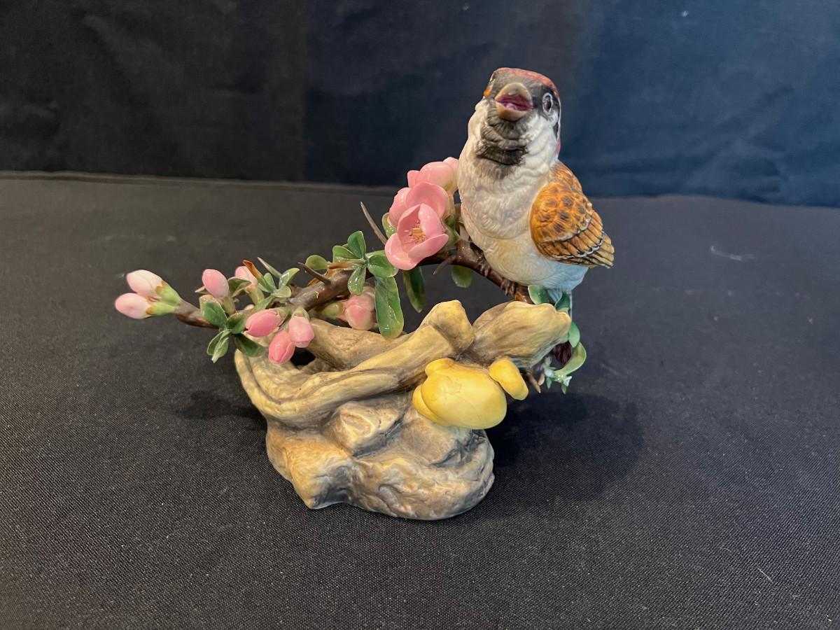 Bohm Bird Figurine w/ Pink Flowers on twig