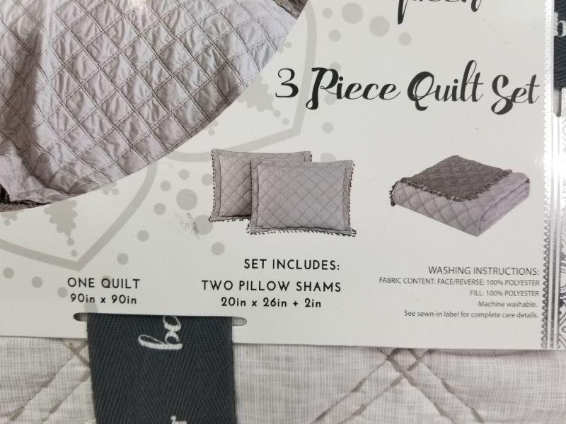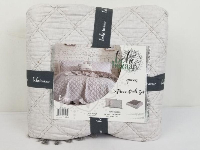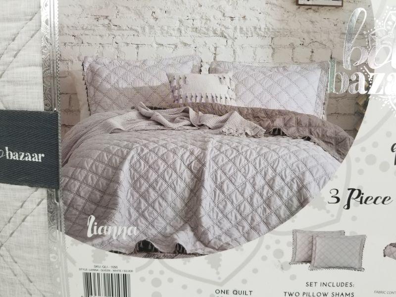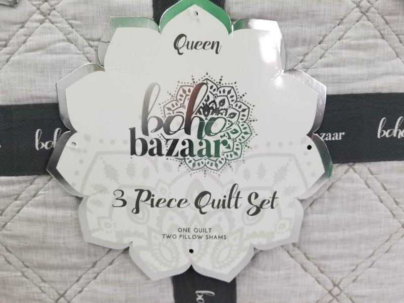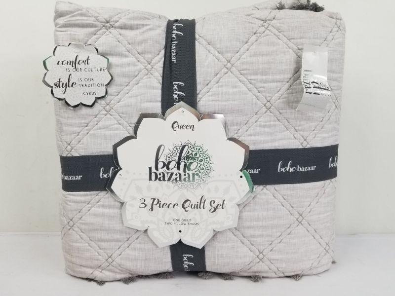 Boho Bazaar 3pc Queen Quilt Set - White/Silver - New