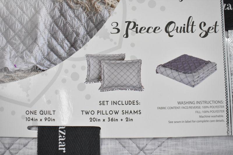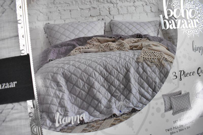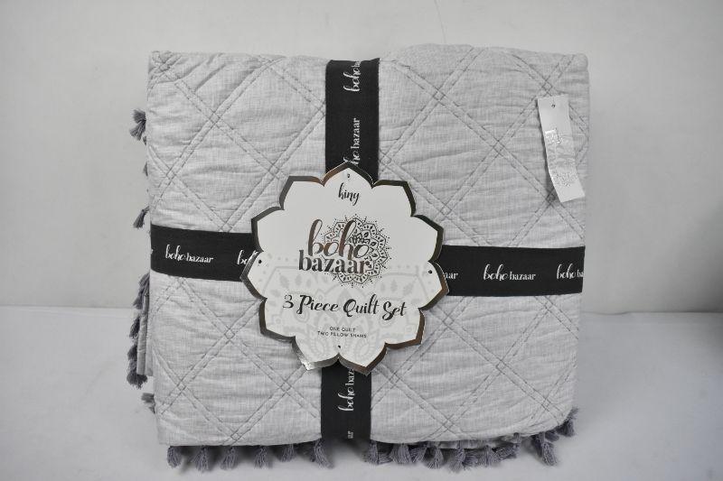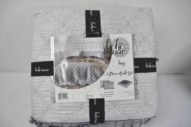 Boho Bazaar King Size 3 piece Quilt Set, Lilac - New
